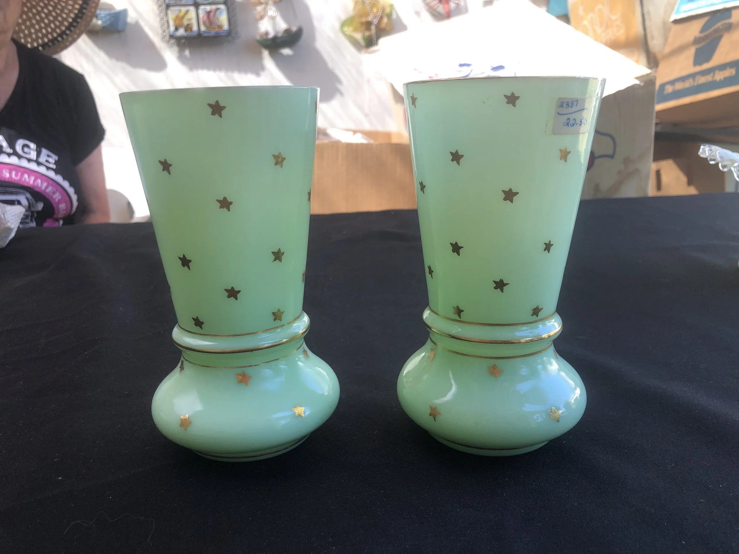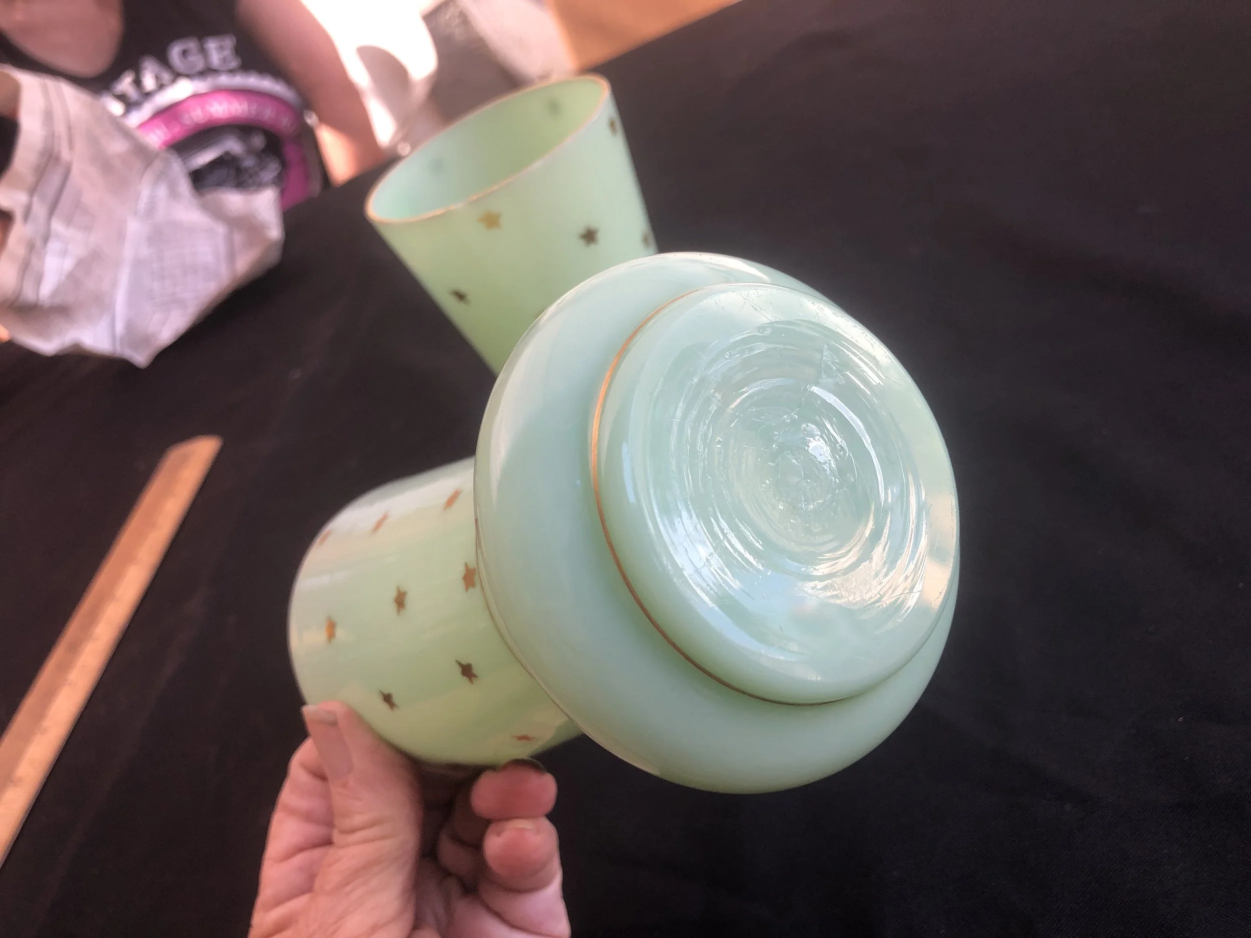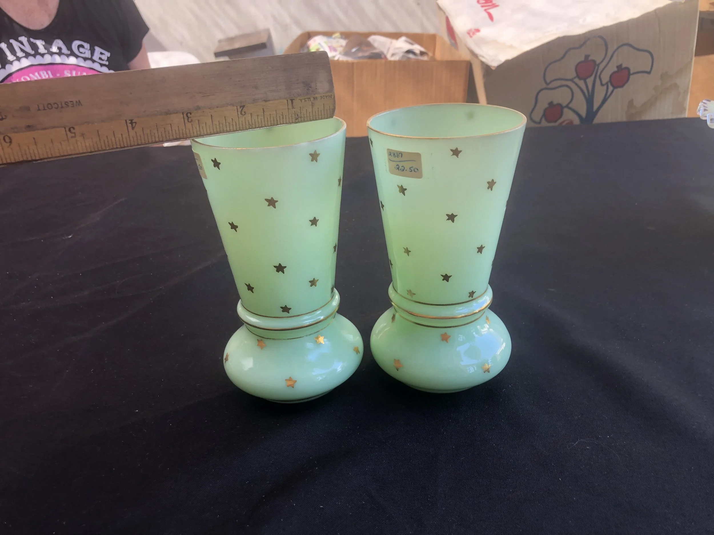 Moms Dream Vintage Finds Shop Categories: All ADVERTISING - PRINTED ANIMAL CREATURES ANTIQUE ART DECO - ART NOUVEAU ART GLASS AUTOMOTIVE - TRANSPORT BARBER - MENS VANITY BAR WARE - ASHTRAYS - LIGHTERS - CASES BELLS - BANKS BEVERAGE WARE BOOKENDS - DOORSTOPS BOTTLES - JARS - JUGS - PITCHERS BOWLS BOXES - TRINKET DISH BRAND NAME CANDLE HOLDERS CANDY DISH CARTOON - COMIC - MOVIE CERAMICS - PORCELAIN - BISQUE CLOCKS - WATCHES CLOISONNE - ENAMEL CLOTHING - PURSES - SEWING COLORED GLASS COOKIE JARS - CAKE & CHOP PLATES CRYSTAL - CUT - ETCHED - PRESSED DISH SETS ELF - PIXIE - FAIRY EMBROIDERY - NEEDLEPOINT - SEWING FiGURINE - STATUE FLOWER FROG - PAPER WEIGHT - SNOW GLOBES FOREIGN GLASSWARE HISTORIC - LOCATION - SOUVENIR HOLIDAY JEWELRY - SILVER - GOLD LAMPS - APPLIANCE METAL - TIN MILITARY - POLICE - POLITICAL MILKGLASS NATIVE AMERICAN PICTURES - PAINTINGS - HANGINGS PLASTIC - LUCITE - RESIN PLATES POTTERY - CEMENT - CLAY - CHALKWARE RECORDS - MUSIC RELIGIOUS - RITUAL SERVING - UTENSILS - KITCHEN SALT - PEPPER SIGNED SOAP, SAND, PRECIOUS STONE SPORTS - OLYMPICS SUGAR - CREAMER - TEA POT TOOTHPICK AND NAPKIN HOLDERS TOYS - DOLLS - GAMES TRIVETS - TILES - TRAYS VANITY - PERFUME - JEWELRY BOX VASE - PLANTER - WALL POCKET WOODEN All | ADVERTISING - PRINTED | ANIMAL CREATURES | ANTIQUE | ART DECO - ART NOUVEAU | ART GLASS | AUTOMOTIVE - TRANSPORT | BARBER - MENS VANITY | BAR WARE - ASHTRAYS - LIGHTERS - CASES | BELLS - BANKS | BEVERAGE WARE | BOOKENDS - DOORSTOPS | BOTTLES - JARS - JUGS - PITCHERS | BOWLS | BOXES - TRINKET DISH | BRAND NAME | CANDLE HOLDERS | CANDY DISH | CARTOON - COMIC - MOVIE | CERAMICS - PORCELAIN - BISQUE | CLOCKS - WATCHES | CLOISONNE - ENAMEL | CLOTHING - PURSES - SEWING | COLORED GLASS | COOKIE JARS - CAKE & CHOP PLATES | CRYSTAL - CUT - ETCHED - PRESSED | DISH SETS | ELF - PIXIE - FAIRY | EMBROIDERY - NEEDLEPOINT - SEWING | FiGURINE - STATUE | FLOWER FROG - PAPER WEIGHT - SNOW GLOBES | FOREIGN | GLASSWARE | HISTORIC - LOCATION - SOUVENIR | HOLIDAY | JEWELRY - SILVER - GOLD | LAMPS - APPLIANCE | METAL - TIN | MILITARY - POLICE - POLITICAL | MILKGLASS | NATIVE AMERICAN | PICTURES - PAINTINGS - HANGINGS | PLASTIC - LUCITE - RESIN | PLATES | POTTERY - CEMENT - CLAY - CHALKWARE | RECORDS - MUSIC | RELIGIOUS - RITUAL | SERVING - UTENSILS - KITCHEN | SALT - PEPPER | SIGNED | SOAP, SAND, PRECIOUS STONE | SPORTS - OLYMPICS | SUGAR - CREAMER - TEA POT | TOOTHPICK AND NAPKIN HOLDERS | TOYS - DOLLS - GAMES | TRIVETS - TILES - TRAYS | VANITY - PERFUME - JEWELRY BOX | VASE - PLANTER - WALL POCKET | WOODEN | Quick View PV Toy Amber French Swirl Finger Ring Chamber Candlestick Holder - France $15.00 Quick View Stratton Powder Compact with a Red Rose Motif $35.00 Quick View MCM - Mid Century Ceramic Fruit Basket(s) Wall Decor (3 Pieces) $30.00 Quick View Vintage China Tea Cup & Saucer Signed - Pink Saucer Made In Occupied Japan $25.00 Quick View Betson China Hand-Painted Porcelain Demitasse Tea Cup and Saucer Set From Japan $20.00 Quick View Vohenstrauss Johann Seltmann - Bavaria Demitasse Cup & Saucer Cobalt & Gold $25.00 Quick View Metlox Poppy Trail - Red Rooster Pattern $200.00 Quick View Antique Dogwood RS Prussia Footed Porcelain Cup Hand Painted Floral Design 2"x4" - Circa 1870-1918 $40.00 Quick View Occupied Japan Rose Demitasse Tea Cup & Saucer - Ardalt Gold Beaded Accents Blue - 1920-1949 $25.00 Quick View Roseville Pottery Carnelian I Vase Antique Blue $100.00 Quick View Royal Bayreuth Lobster Creamer or Drawn Butter Pitcher - Bavaria $30.00 Quick View Art Glass Large Blue Irridescent Glass Tray with Abstract Design $75.00 Quick View Art Nouveau Reclining Elk Moose Creamer Czechoslovakia - Ditmar Urbach 1920s 1930s $65.00 Quick View Large Pottery Grayish-Blue Footed Urn with Garland $25.00 Quick View Large Brown Stoneware Bean Pot with Bale Handle $75.00 Quick View Toby Pitcher Character Jug Made in Laguna Beach, CA $15.00 Quick View Childs Bowl - 1930s “Where are you Going to, my Pretty Maid” Childs Nursey Rhymes Bowl -Royal Doulton Nursery Rhymes - England $18.00 Quick View Vintage Anchor Hocking MISS AMERICA Clear Crystal Round Compote with Diamond Point Body $20.00 Quick View W. Frazier California Pottery Green Leaf Centerpiece Serving Bowl #100 $20.00 Quick View Franciscan Forget-Me-Not Oval Platter $30.00 Quick View Huge Indiana Glass Marigold Carnival Glass Beverage Pitcher with Ice Lip - 1960s $45.00 Quick View Bone China Flower Arrangement - Aynsley England $30.00 Quick View Vintage Porcelain Oriental Asian Japan Girl / Lady w Fan Figurine $15.00 Quick View Royal Ruby Depression Glass Vase with Ringed Middle - Anchor Hocking - 1938-1940 $18.00 Quick View Kreiss & Company - "Psycho Ceramics" Hobo Figure - 1950s $15.00 Quick View Ornate Silesia Plate -1920 Germany Vintage Handpainted Scalloped Porcelain Plate with Purple Floral Rim $15.00 Quick View Crystal Domed Paperweight with Orange and Green Floral $25.00 Quick View Five (5) Limoges Saucers with Pink Roses and Blue Ribbons $25.00 Quick View German Art Pottery - Green Amano Scheurich Vase #629-40 Cylinder Vase with Drip Glaze $45.00 Quick View USA Art Deco Hall Airflow 6 Cup Teapot in Cobalt Blue with Gold Trim - SOLD $75.00 Quick View Set of Six (6) - Padre Pottery Four Ringed Tumblers $125.00 Quick View Small Light Green Glass Basket $20.00 Quick View Pressed Glass Small Clear Scalloped Basket $12.00 Quick View Fused Art Glass Plate Andra DuRee Martin with Fruit $30.00 Quick View Blenko Sea Green Crackle Glass Aqua Green Top Hat Art Glass $28.00 Quick View Soft Stone Potted Flower Arrangement $20.00 Quick View Anchor Hocking Pair - Forest Green Glass Stemmed Goblets $18.00 Quick View The Little King - 6-sided Clear Glass Ashtray $20.00 Quick View Child's Tin Toy Beverage Pitcher $5.00 Quick View Victoria Austria - Cobalt Rimmed Plate with the White House $15.00 Quick View Fenton - White Coin Dot Glass Candlestick - SOLD $45.00 Quick View Royal Copley 2-Tone Beige Pottery Vase with Dogwood Cascade $35.00 Quick Vi