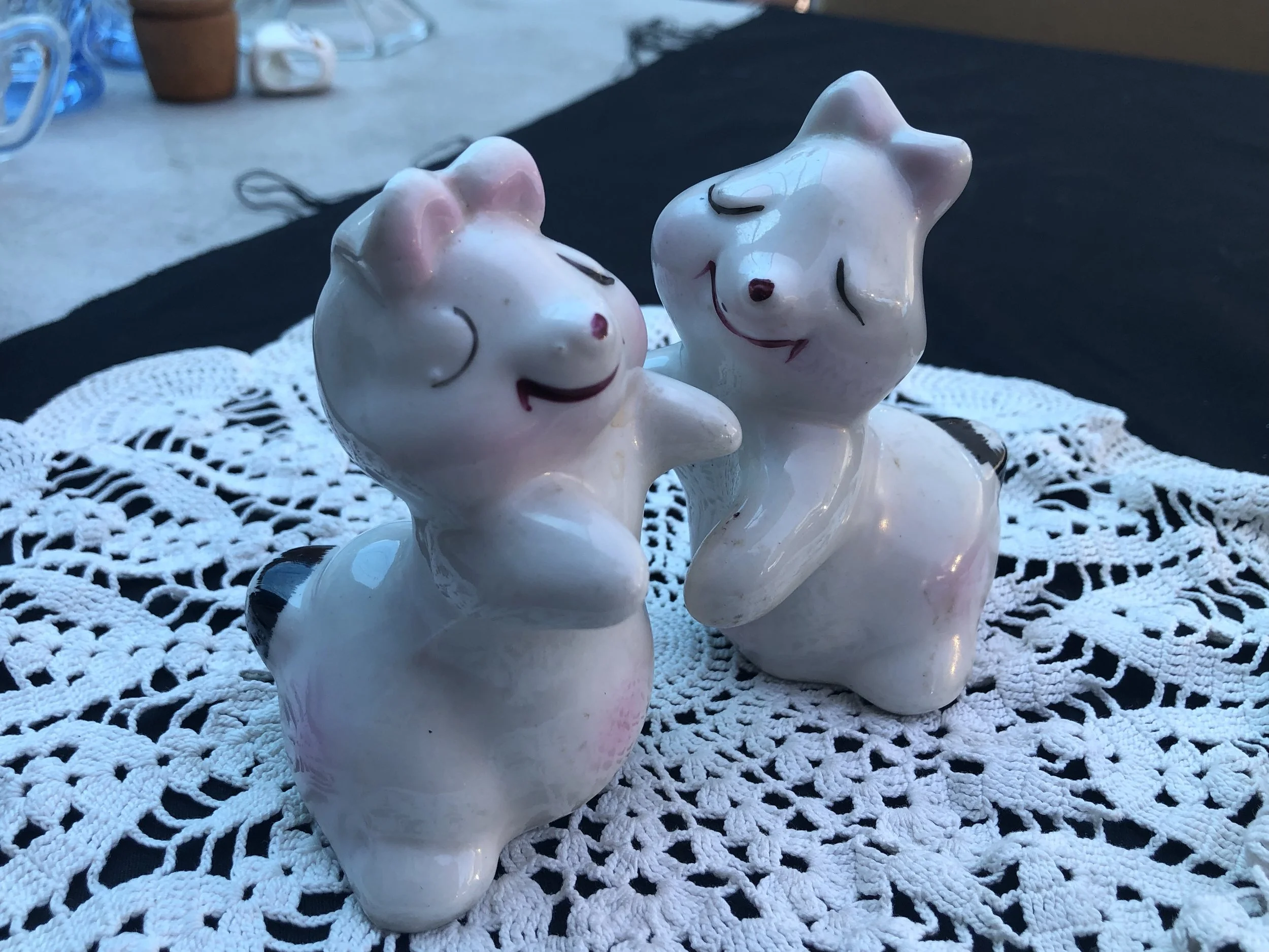 All / ANIMAL CREATURES ANIMAL CREATURES Clear Filters Categories All ADVERTISING - PRINTED ANIMAL CREATURES ANTIQUE ART DECO - ART NOUVEAU ART GLASS AUTOMOTIVE - TRANSPORT BARBER - MENS VANITY BAR WARE - ASHTRAYS - LIGHTERS - CASES BELLS - BANKS BEVERAGE WARE BOOKENDS - DOORSTOPS BOTTLES - JARS - JUGS - PITCHERS BOWLS BOXES - TRINKET DISH BRAND NAME CANDLE HOLDERS CANDY DISH CARTOON - COMIC - MOVIE CERAMICS - PORCELAIN - BISQUE CLOCKS - WATCHES CLOISONNE - ENAMEL CLOTHING - PURSES - SEWING COLORED GLASS COOKIE JARS - CAKE & CHOP PLATES CRYSTAL - CUT - ETCHED - PRESSED DISH SETS ELF - PIXIE - FAIRY EMBROIDERY - NEEDLEPOINT - SEWING FiGURINE - STATUE FLOWER FROG - PAPER WEIGHT - SNOW GLOBES FOREIGN GLASSWARE HISTORIC - LOCATION - SOUVENIR HOLIDAY JEWELRY - SILVER - GOLD LAMPS - APPLIANCE METAL - TIN MILITARY - POLICE - POLITICAL MILKGLASS NATIVE AMERICAN PICTURES - PAINTINGS - HANGINGS PLASTIC - LUCITE - RESIN PLATES POTTERY - CEMENT - CLAY - CHALKWARE RECORDS - MUSIC RELIGIOUS - RITUAL SERVING - UTENSILS - KITCHEN SALT - PEPPER SEA LIFE SIGNED SOAP, SAND, PRECIOUS STONE SPORTS - OLYMPICS SUGAR - CREAMER - TEA POT TOOTHPICK AND NAPKIN HOLDERS TOYS - DOLLS - GAMES TRIVETS - TILES - TRAYS VANITY - PERFUME - JEWELRY BOX VASE - PLANTER - WALL POCKET WOODEN Filter Clear Filter Quick View Pair of Vintage Ceramic White Rooster and Hen $12.00 Quick View Crystal Bird Bell with Sawtooth Edge $12.00 Quick View Cute Little Ceramic Stinker - Skunk Figurine Made in Japan - SOLD $12.50 Quick View Little Green Ceramic Snail Figurine - SOLD $9.50 Quick View Ivory Resin Chariot with Rider and Horses $10.00 Quick View Vintage Ceramic Hyalyn Trivet Hunting Dog $12.00 Quick View 1972 Copenhagen Porcelain – Moms Day Plate with Horses $20.00 Quick View MCM Crystal Swan with Long Gold Neck Paperweight $20.00 Quick View New Mexico Road Runner Souvenir Bell - Made in Japan $10.00 Quick View Fiery Red Swimming Fish Surrounded by Bullicante Bubbles Paperweight $15.00 Quick View Vintage Josef Originals Japan Bunny Hutch Series Bunny w/ Pants Caught On Fence $20.00 Quick View 1950's Bashful Bunny Rabbit Ceramic Figurine Bernard Studios $15.00 Quick View Kimple Christmas Ceramic Reindeer with Quilted Look $20.00 Quick View 1950's Cast Plaster Bears in Their Den Book Ends - SOLD $55.00 Quick View Crystal Faceted Cut Bell w/ Frosted Bird Atop $10.00 Quick View Vintage Resin Rottweiler Dog Statue $15.00 Quick View Vintage Shawnee Pottery 1940's PUSS N’ BOOTS Smiling Cat Head Cookie Jar (Lid Only) $30.00 Quick View Beatrix Potter - Beswick Hunca Munca Mouse – 1951 - England - SOLD $35.00 Quick View 1950’s Rare LOFISA Cruet Pitcher From Mexico Guadalajara Salvador W/ Deer $30.00 Quick View Josef Originals Deer in Love - Stag and Doe - with Holly - SOLD $100.00 Quick View Precious Moments - 1980 - God Is Love PENDING $22.00 Quick View Vintage 1940s Hazel Atlas Milk Glass Children's Mug - SOLD $10.00 Quick View White China Children’s Tea Set for Four with Bears $22.00 Quick View Multi-Colored Figural Toucan Pottery Pump Bottle $15.00 Quick View Perky Rooster Pottery Planter on Brass Base $15.00 Quick View Royal Copenhagen – Barnyard / Goose Plate $35.00 Quick View Large Boxer Dog Figurine – "As Is” $18.00 Quick View Ceramic Tan and White Figural Seal $20.00 Quick View Mallard Duck Pottery Table Lamp $40.00 Quick View Duncan & Miller – Crystal and Green Swan Bowl - SOLD $40.00 Quick View Vintage Elise The Borden Cow Pottery Cookie Jar - 1940 SOLD $75.00 Quick View Avon Pottery Figural Frog Sachet Holder $10.00 Quick View Small Solid Metal Scottie Dog Figurine $13.00 Quick View Kay Finch Pink and White Rabbit $25.00 Quick View Ivory Pottery Poulter Pigeon $20.00 Quick View Figural Three Spaniels with Drum $5.00 Quick View Viet Nam Art Pottery Vase with Birds $75.00 Quick View Vintage – Large Turkey Salt and Pepper Shakers $25.00 Quick View Frosted Glass Tray with Flying Cranes and Metal Rail $20.00 Quick View Sky Blue Pottery Duck with Wings Spread $14.00 Quick View Morten’s Studio – Brown Boxer Dog $45.00 Quick View Sparkle Eyes Figural Owl - SOLD $10.00 Quick View Black Pottery Fat Cat Mug SOLD $6.00 Quick View Coca Cola Bean Bag Plush Penguin $8.00 Quick View Swedish Crystal Teardrop Vase with Bee/Floral $35.00 Quick View Kay Finch Light Blue Pottery Bird $26.00 Quick View Green Glass Horeshoe – “Good Luck” Ashtray with Horsehead $12.00 Quick View Vintage Mikasa China – Three Piece Child’s Place Setting with Teddy Bears - SOLD $25.00 Quick View Duncan & Miller Crystal Duck Ashtray $28.00 Quick View Lefton China Figural Baby Blue Jay $15.00 Quick View Metal Elephant on Slice of Cut Agate Geode $20.00 Quick View White China Cat Salt & Pepper Shakers $15.00 Quick View White Pottery Figural Duck / Baby Statue $10.00 Quick View Vernon Kilns Specialty Plate – Alaska Husky Dog $32.00 Quick View 1989 “Together For Christmas” Plate – Avon $20.00 Quick View 101 Dalmatians Glass Bubble Bath Container $15.00 Quick View Vantellingen Shakers – Girl and Lamb Huggers $65.00 Quick View Chestnut Brown and White Breyer Horse $20.00 Quick View Breyer Dark Brown Prancing Colt $20.00 Quick View Multi-Colored Pottery Turkey Candlestick - SOLD $15.00 Quick View American Flag Large Pottery Eagle on Rock $35.00 Quick View Gold Luster China Shoe with Mice $20.00 Quick View Consolidated or Phoenix Glass Grasshopper Vase $150.00 Quick View Pale Lemon Yellow Heavy Crystal Figural Penguin Paperweight $25.00 Quick View Lenox – Serenade Globe Vase with Birds and Flowers $50.00 Quick View Small Porcelain Figural Chicken – Germany $18.00 Quick View 1960s Walt Disney Productions Lady & The Tramp Blue Plastic Puppy Dog $15.00 Quick View Antique Fish Wine Bottle Painted Over Green Glass $35.00 Quick View California Pottery S15 Aqua Swan console Bowl Cut Flowers $35.00 Quick View Vintage Mason's Crabtree & Evelyn Beatrix Potter “Tom Kitten” Ceramic Soap Dish - SOLD $10.00 Quick View Mouse - Produce Merchant – V