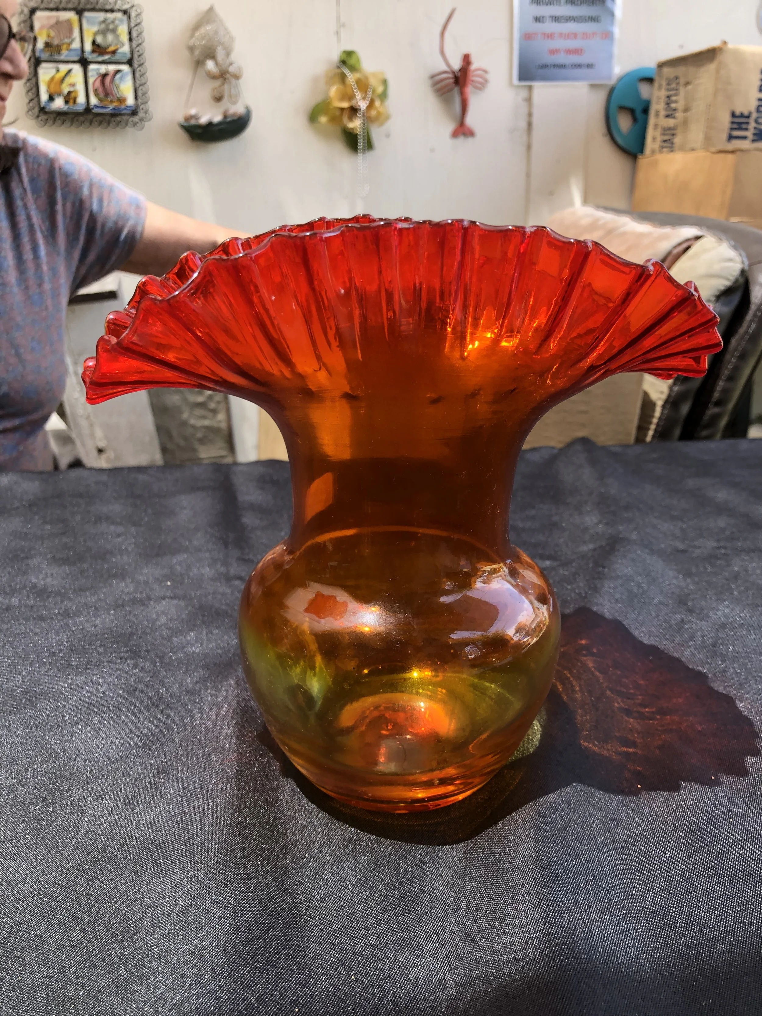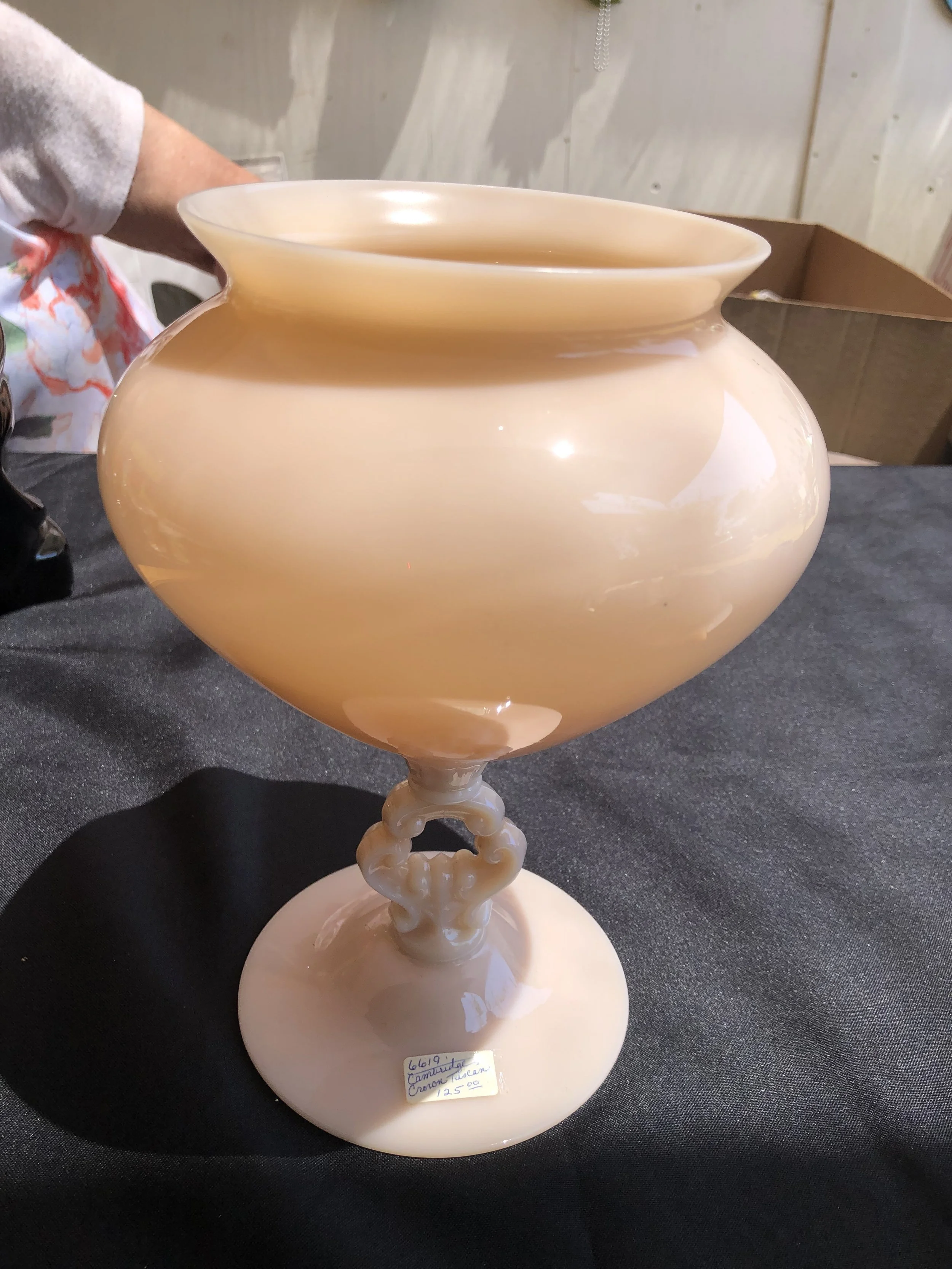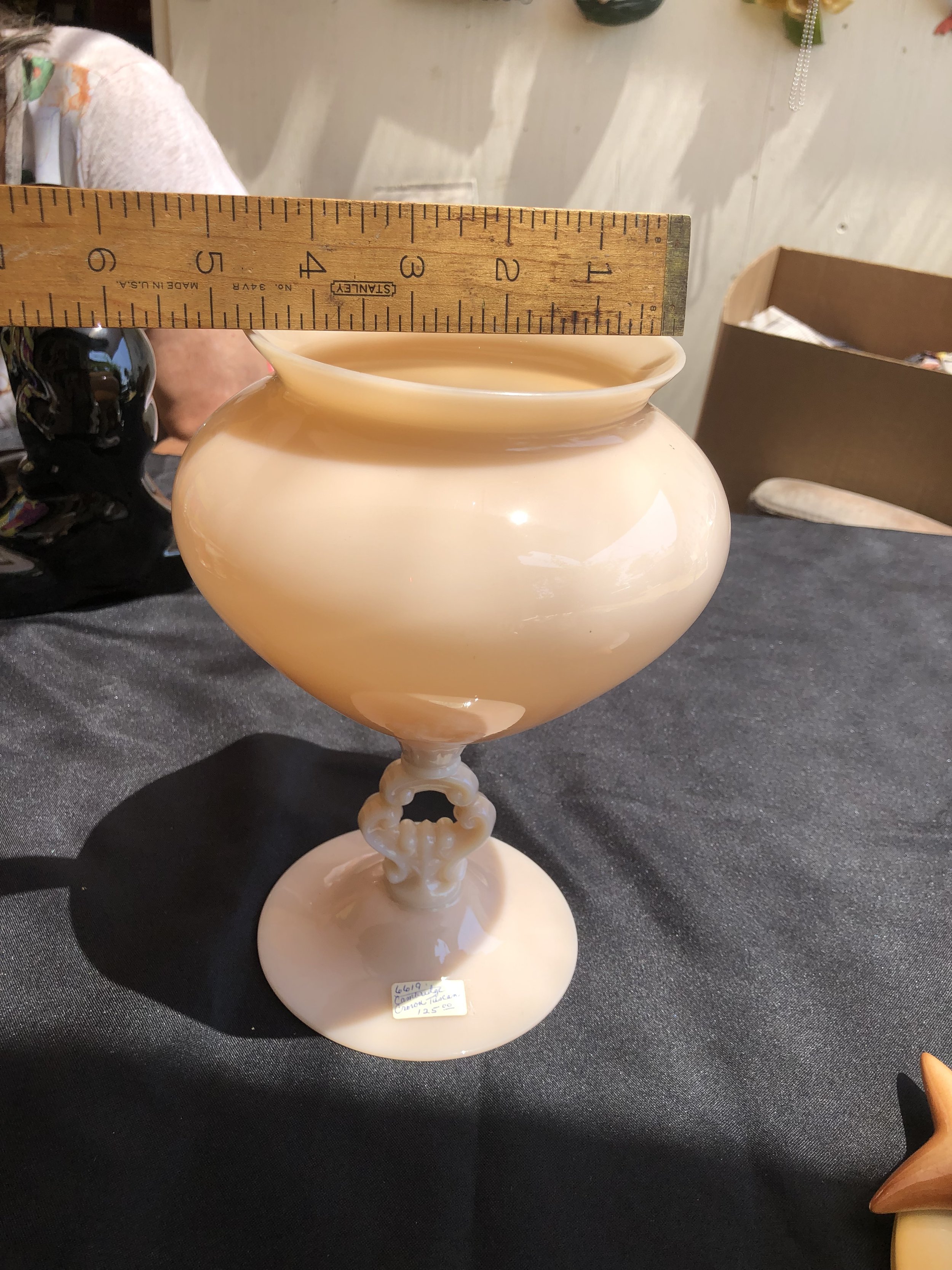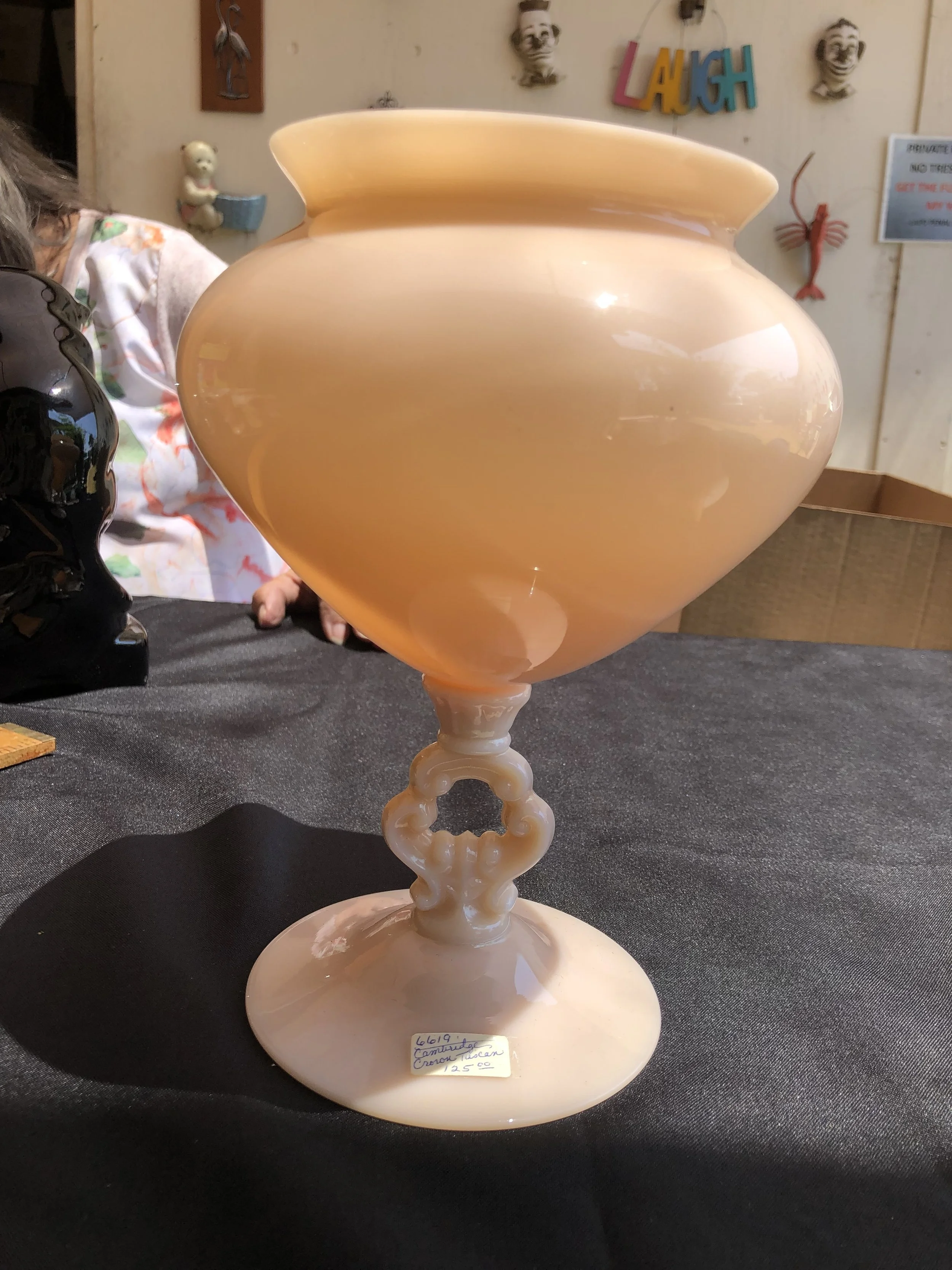 ART GLASS Categories: All ADVERTISING - PRINTED ANIMAL CREATURES ANTIQUE ART DECO - ART NOUVEAU ART GLASS AUTOMOTIVE - TRANSPORT BARBER - MENS VANITY BAR WARE - ASHTRAYS - LIGHTERS - CASES BELLS - BANKS BEVERAGE WARE BOOKENDS - DOORSTOPS BOTTLES - JARS - JUGS - PITCHERS BOWLS BOXES - TRINKET DISH BRAND NAME CANDLE HOLDERS CANDY DISH CARTOON - COMIC - MOVIE CERAMICS - PORCELAIN - BISQUE CLOCKS - WATCHES CLOISONNE - ENAMEL CLOTHING - PURSES - SEWING COLORED GLASS COOKIE JARS - CAKE & CHOP PLATES CRYSTAL - CUT - ETCHED - PRESSED DISH SETS ELF - PIXIE - FAIRY EMBROIDERY - NEEDLEPOINT - SEWING FiGURINE - STATUE FLOWER FROG - PAPER WEIGHT - SNOW GLOBES FOREIGN GLASSWARE HISTORIC - LOCATION - SOUVENIR HOLIDAY JEWELRY - SILVER - GOLD LAMPS - APPLIANCE METAL - TIN MILITARY - POLICE - POLITICAL MILKGLASS NATIVE AMERICAN PICTURES - PAINTINGS - HANGINGS PLASTIC - LUCITE - RESIN PLATES POTTERY - CEMENT - CLAY - CHALKWARE RECORDS - MUSIC RELIGIOUS - RITUAL SERVING - UTENSILS - KITCHEN SALT - PEPPER SIGNED SOAP, SAND, PRECIOUS STONE SPORTS - OLYMPICS SUGAR - CREAMER - TEA POT TOOTHPICK AND NAPKIN HOLDERS TOYS - DOLLS - GAMES TRIVETS - TILES - TRAYS VANITY - PERFUME - JEWELRY BOX VASE - PLANTER - WALL POCKET WOODEN All / Quick View Art Glass Large Blue Irridescent Glass Tray with Abstract Design $75.00 Quick View Huge Indiana Glass Marigold Carnival Glass Beverage Pitcher with Ice Lip - 1960s $45.00 Quick View Royal Ruby Depression Glass Vase with Ringed Middle - Anchor Hocking - 1938-1940 $18.00 Quick View Small Light Green Glass Basket $20.00 Quick View Fused Art Glass Plate Andra DuRee Martin with Fruit $30.00 Quick View Blenko Sea Green Crackle Glass Aqua Green Top Hat Art Glass $28.00 Quick View Soft Stone Potted Flower Arrangement $20.00 Quick View Anchor Hocking Pair - Forest Green Glass Stemmed Goblets $18.00 Quick View Cambridge Drape Pattern - Green and Crystal Stemmed Cocktail or Sherbet $10.00 Quick View Cambridge Glass Farberware Chrome Craft Cocktail Amethyst Stem $12.00 Quick View Fenton White Milk Glass Daisy and Button Basket with Split Twig Handle $22.00 Quick View Bayel Crystal - Bacchante Nude Champagne Glasses - Set of 4 - France $100.00 Quick View Green Depression Glass Candy Bowl with Etched Stars - 1930s $25.00 Quick View MCM Handblown Amethyst Top Hat - Rainbow Glass Company $25.00 Quick View Fenton Milk Glass Ruffled Candy Dish on Pedestal with Silvercrest Edge $25.00 Quick View Rueven Nouveau Art Glass 3 Point Bowl with Satin Stain Drip - 1960s $25.00 Quick View Jeanette Pink Depression Glass Salt Shaker $15.00 Quick View Vintage Fenton Daisy and Button Amberina Top Hat Glass Toothpick Holder Vase $30.00 Quick View Pair of French Gilt-Decorated Opaline Glass Vases - SOLD $200.00 Quick View Hand Blown Red, White, Orange w/ White Swirls Glass Bowl/Trinket Dish with Pontil - 1970s $25.00 Quick View Vintage Indiana Glass ~ Tea Room Clear Ruffled & Footed Vase - 1920-1929 $28.00 Quick View Antique Satin Glass Jack in the Pulpit Vase $35.00 Quick View Green and White Swirl Murano Art Glass Bowl $65.00 Quick View Vintage Fenton Uranium Glass Custard Glass Bell in Daisy and Buttons Pattern $25.00 Quick View Vintage Art Glass Blue and White Vase with Applied Handle - 1960s $12.00 Quick View Jeannette Doric Green Depression Glass Sherbet Dish - 1930-1938 $12.00 Quick View Murano MCM Fratelli Toso Style Turquoise Gold Butterfly Bowl $45.00 Quick View Pink Cambridge Glass Crown Tuscan Keyhole Vase - 1930s $80.00 Quick View Vintage Hand Blown Amberina Vase with Crimped Top (Blenko?) $75.00 Quick View 19th C. Victorian Bohemian Hand-Enameled Blue Opaline 11 ¾” Vase with Floral and Bird $250.00 Quick View MCM Vintage Fenton 2255 Art Glass Vase with Polka Dot Cranberry Opalescent - 1950s $55.00 Quick View Vintage 1960s Viking 6-Petal Blue Swung Glass Vase $30.00 Quick View Vintage MCM Viking Glass Dark Blue Double Crimped Edge Folded Bowl $28.00 Quick View Vintage LE Smith Crystal Clear Large Feather Fern Glass Bowl - 1940s $35.00 Quick View Vintage Fenton Pink Milk Glass Scroll Lace Plate with Reverse C Border $60.00 Quick View Rare Fenton Blue Cased Overlay Melon Vase with Ruffled Edge - 1940-1949 $45.00 Quick View 1970s - Soreno Chip and Dip Aquamarine Bowl Vintage Chip & Dip Set - Anchor Hocking - SOLD $100.00 Quick View Vintage 6 Petal Ruby Red Glass Compote or Candy Dish $12.00 Quick View MCM Vintage Blenko Glass Light Blue with Line Pattern Bowl $28.00 Quick View Antique Fenton Ming Glass Decanter Set with Two Glasses - 1930s $75.00 Quick View Fenton Hobnail Opalescent Double Crimped Glass Vase $25.00 Quick View Dansk International 1970s Mezza Filigrana Swirl Opaline Blue Art Glass Vase $28.00 Quick View Vintage Gold Glass Perfume Bottle with Green Stopper by Glass Act Studio $22.00 Quick View MCM Collectible Art Glass - Viking Console Bowl Emerald Green $40.00 Quick View MCM Anchor Hocking Princess Pattern Green Uranium Glass Shaker $25.00 Quick View Vintage Fenton Art Glass Colonial Blue Hobnail Cat Shoe Cobalt Blue $20.00 Quick View Vintage Murano Style Hand Blown Art Glass Set Of 10 Fruit And Vegetables (1970s) $75.00 Quick View Black Long Neck Art Glass Swan Figurines $18.00 Quick View Vintage Fenton Glass Red Amberina Hobnail Compot Rose Bowl $50.00 Quick View Large 15" Fenton Art Glass Avocado Green One Horn Epergne with Crimped Edge Hand Blown Flower Vase $150.00 Quick View Fenton Art Glass Silver Crest Ruffled Candy Dish or Bowl - White Milk Glass $45.00 Quick View Small Round Crystal Cut Green Overlay Bowl $18.00 Quick View Heavy Egg-Shaped Paperweight – Crystal with Center Drop and Multi-Colored Swirls $28.00 Quick View Fiery Red Swimming Fish Surrounded by Bullicante Bubbles Paperweight $15.00 Quick View Dark Purple, Gold, Splattered White Glass Paperweight $15.00 Quick View Tozai – Hand-Crafted Plum Satin Glass with Applied Green Tree $25.00 Quick View Murano Glass Copper and Green Paperweight $40.00 Quick View Consolidated Glass Bowl – Fruit and Leaves $65.00 Qui