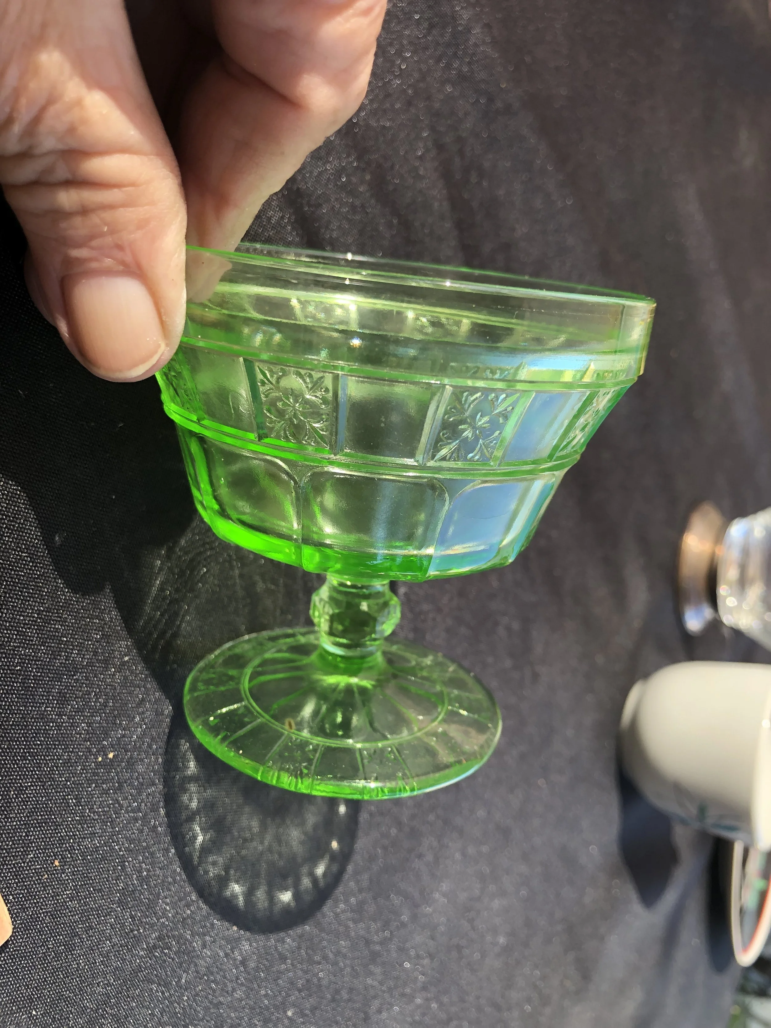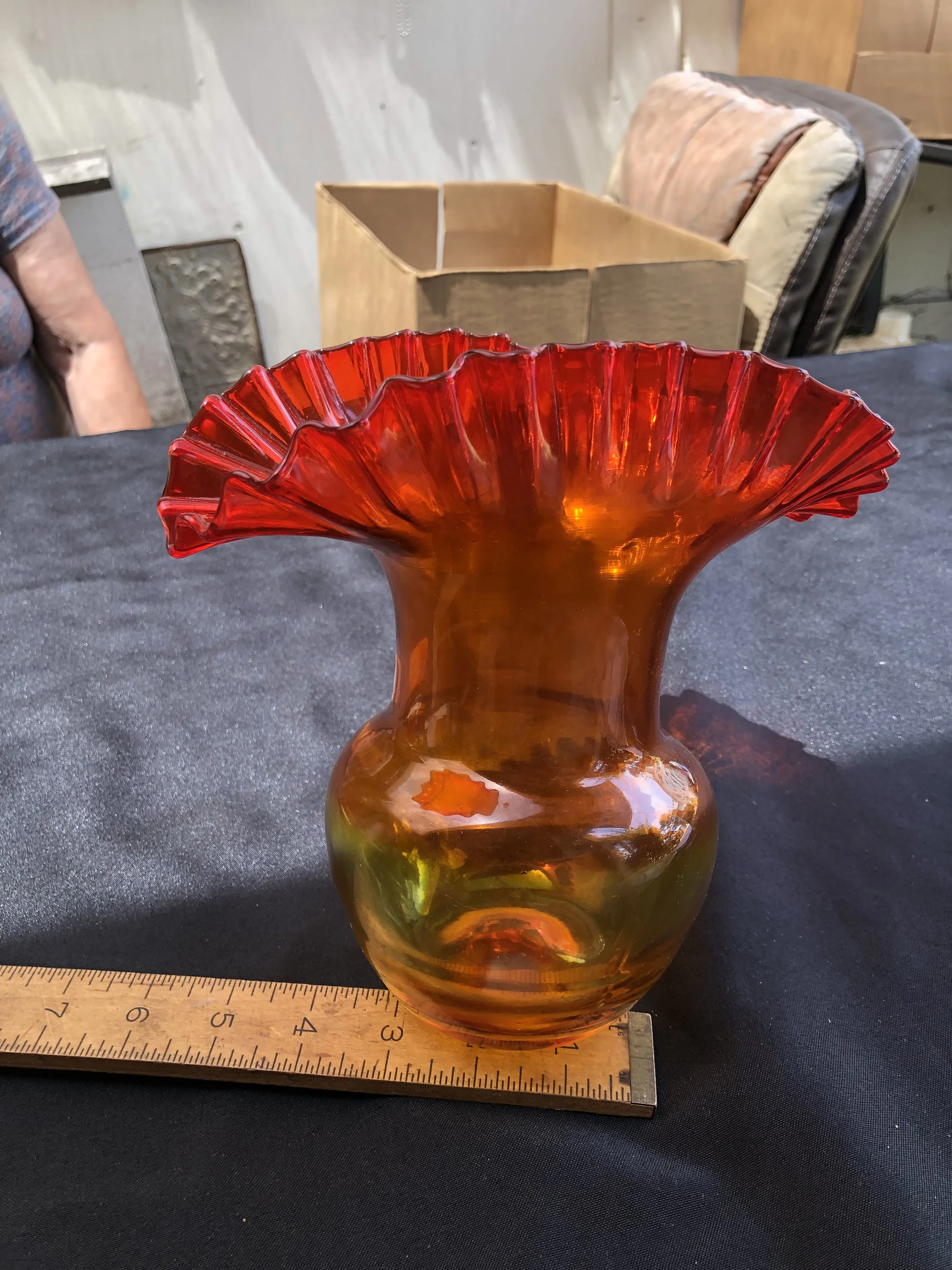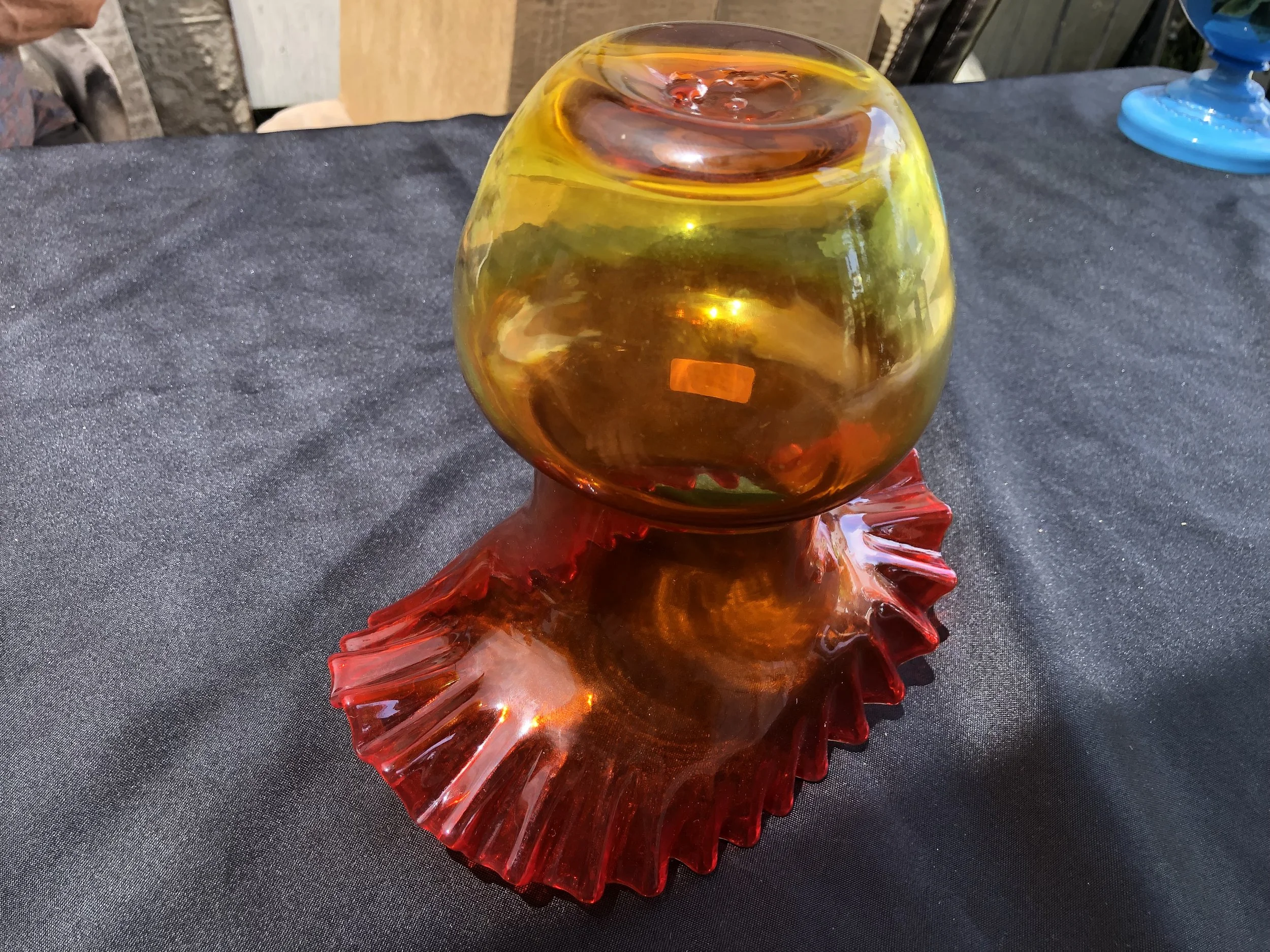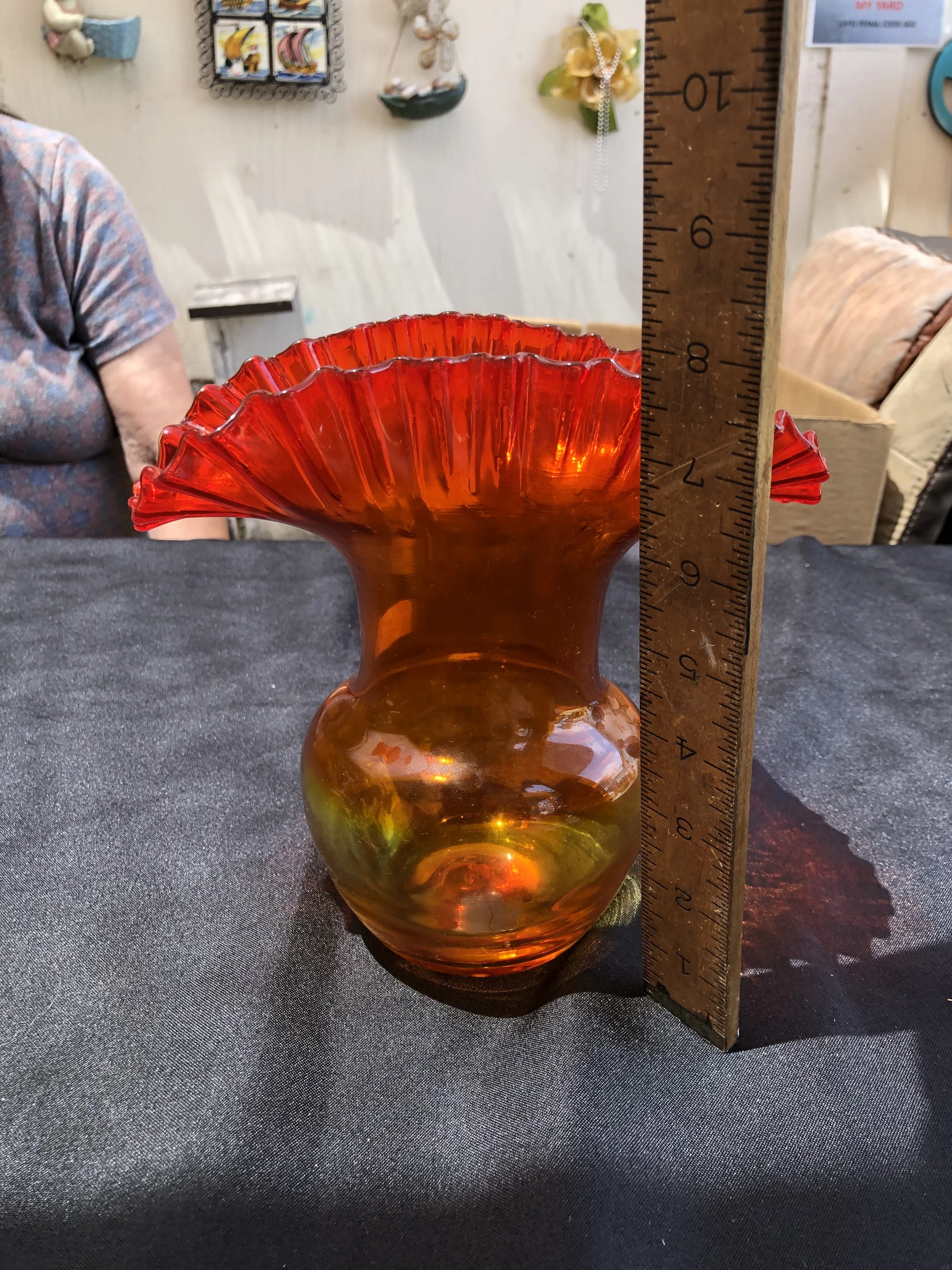 ART GLASS Categories: All ADVERTISING - PRINTED ANIMAL CREATURES ANTIQUE ART DECO - ART NOUVEAU ART GLASS AUTOMOTIVE - TRANSPORT BARBER - MENS VANITY BAR WARE - ASHTRAYS - LIGHTERS - CASES BELLS - BANKS BEVERAGE WARE BOOKENDS - DOORSTOPS BOTTLES - JARS - JUGS - PITCHERS BOWLS BOXES - TRINKET DISH BRAND NAME CANDLE HOLDERS CANDY DISH CARTOON - COMIC - MOVIE CERAMICS - PORCELAIN - BISQUE CLOCKS - WATCHES CLOISONNE - ENAMEL CLOTHING - PURSES - SEWING COLORED GLASS COOKIE JARS - CAKE & CHOP PLATES CRYSTAL - CUT - ETCHED - PRESSED DISH SETS ELF - PIXIE - FAIRY EMBROIDERY - NEEDLEPOINT - SEWING FiGURINE - STATUE FLOWER FROG - PAPER WEIGHT - SNOW GLOBES FOREIGN GLASSWARE HISTORIC - LOCATION - SOUVENIR HOLIDAY JEWELRY - SILVER - GOLD LAMPS - APPLIANCE METAL - TIN MILITARY - POLICE - POLITICAL MILKGLASS NATIVE AMERICAN PICTURES - PAINTINGS - HANGINGS PLASTIC - LUCITE - RESIN PLATES POTTERY - CEMENT - CLAY - CHALKWARE RECORDS - MUSIC RELIGIOUS - RITUAL SERVING - UTENSILS - KITCHEN SALT - PEPPER SIGNED SOAP, SAND, PRECIOUS STONE SPORTS - OLYMPICS SUGAR - CREAMER - TEA POT TOOTHPICK AND NAPKIN HOLDERS TOYS - DOLLS - GAMES TRIVETS - TILES - TRAYS VANITY - PERFUME - JEWELRY BOX VASE - PLANTER - WALL POCKET WOODEN All / Quick View Art Glass Large Blue Irridescent Glass Tray with Abstract Design $75.00 Quick View Huge Indiana Glass Marigold Carnival Glass Beverage Pitcher with Ice Lip - 1960s $45.00 Quick View Royal Ruby Depression Glass Vase with Ringed Middle - Anchor Hocking - 1938-1940 $18.00 Quick View Small Light Green Glass Basket $20.00 Quick View Fused Art Glass Plate Andra DuRee Martin with Fruit $30.00 Quick View Blenko Sea Green Crackle Glass Aqua Green Top Hat Art Glass $28.00 Quick View Soft Stone Potted Flower Arrangement $20.00 Quick View Anchor Hocking Pair - Forest Green Glass Stemmed Goblets $18.00 Quick View Cambridge Drape Pattern - Green and Crystal Stemmed Cocktail or Sherbet $10.00 Quick View Cambridge Glass Farberware Chrome Craft Cocktail Amethyst Stem $12.00 Quick View Fenton White Milk Glass Daisy and Button Basket with Split Twig Handle $22.00 Quick View Bayel Crystal - Bacchante Nude Champagne Glasses - Set of 4 - France $100.00 Quick View Green Depression Glass Candy Bowl with Etched Stars - 1930s $25.00 Quick View MCM Handblown Amethyst Top Hat - Rainbow Glass Company $25.00 Quick View Fenton Milk Glass Ruffled Candy Dish on Pedestal with Silvercrest Edge $25.00 Quick View Rueven Nouveau Art Glass 3 Point Bowl with Satin Stain Drip - 1960s $25.00 Quick View Jeanette Pink Depression Glass Salt Shaker $15.00 Quick View Vintage Fenton Daisy and Button Amberina Top Hat Glass Toothpick Holder Vase $30.00 Quick View Pair of French Gilt-Decorated Opaline Glass Vases - SOLD $200.00 Quick View Hand Blown Red, White, Orange w/ White Swirls Glass Bowl/Trinket Dish with Pontil - 1970s $25.00 Quick View Vintage Indiana Glass ~ Tea Room Clear Ruffled & Footed Vase - 1920-1929 $28.00 Quick View Antique Satin Glass Jack in the Pulpit Vase $35.00 Quick View Green and White Swirl Murano Art Glass Bowl $65.00 Quick View Vintage Fenton Uranium Glass Custard Glass Bell in Daisy and Buttons Pattern $25.00 Quick View Vintage Art Glass Blue and White Vase with Applied Handle - 1960s $12.00 Quick View Jeannette Doric Green Depression Glass Sherbet Dish - 1930-1938 $12.00 Quick View Murano MCM Fratelli Toso Style Turquoise Gold Butterfly Bowl $45.00 Quick View Pink Cambridge Glass Crown Tuscan Keyhole Vase - 1930s $80.00 Quick View Vintage Hand Blown Amberina Vase with Crimped Top (Blenko?) $75.00 Quick View 19th C. Victorian Bohemian Hand-Enameled Blue Opaline 11 ¾” Vase with Floral and Bird $250.00 Quick View MCM Vintage Fenton 2255 Art Glass Vase with Polka Dot Cranberry Opalescent - 1950s $55.00 Quick View Vintage 1960s Viking 6-Petal Blue Swung Glass Vase $30.00 Quick View Vintage MCM Viking Glass Dark Blue Double Crimped Edge Folded Bowl $28.00 Quick View Vintage LE Smith Crystal Clear Large Feather Fern Glass Bowl - 1940s $35.00 Quick View Vintage Fenton Pink Milk Glass Scroll Lace Plate with Reverse C Border $60.00 Quick View Rare Fenton Blue Cased Overlay Melon Vase with Ruffled Edge - 1940-1949 $45.00 Quick View 1970s - Soreno Chip and Dip Aquamarine Bowl Vintage Chip & Dip Set - Anchor Hocking - SOLD $100.00 Quick View Vintage 6 Petal Ruby Red Glass Compote or Candy Dish $12.00 Quick View MCM Vintage Blenko Glass Light Blue with Line Pattern Bowl $28.00 Quick View Antique Fenton Ming Glass Decanter Set with Two Glasses - 1930s $75.00 Quick View Fenton Hobnail Opalescent Double Crimped Glass Vase $25.00 Quick View Dansk International 1970s Mezza Filigrana Swirl Opaline Blue Art Glass Vase $28.00 Quick View Vintage Gold Glass Perfume Bottle with Green Stopper by Glass Act Studio $22.00 Quick View MCM Collectible Art Glass - Viking Console Bowl Emerald Green $40.00 Quick View MCM Anchor Hocking Princess Pattern Green Uranium Glass Shaker $25.00 Quick View Vintage Fenton Art Glass Colonial Blue Hobnail Cat Shoe Cobalt Blue $20.00 Quick View Vintage Murano Style Hand Blown Art Glass Set Of 10 Fruit And Vegetables (1970s) $75.00 Quick View Black Long Neck Art Glass Swan Figurines $18.00 Quick View Vintage Fenton Glass Red Amberina Hobnail Compot Rose Bowl $50.00 Quick View Large 15" Fenton Art Glass Avocado Green One Horn Epergne with Crimped Edge Hand Blown Flower Vase $150.00 Quick View Fenton Art Glass Silver Crest Ruffled Candy Dish or Bowl - White Milk Glass $45.00 Quick View Small Round Crystal Cut Green Overlay Bowl $18.00 Quick View Heavy Egg-Shaped Paperweight – Crystal with Center Drop and Multi-Colored Swirls $28.00 Quick View Fiery Red Swimming Fish Surrounded by Bullicante Bubbles Paperweight $15.00 Quick View Dark Purple, Gold, Splattered White Glass Paperweight $15.00 Quick View Tozai – Hand-Crafted Plum Satin Glass with Applied Green Tree $25.00 Quick View Murano Glass Copper and Green Paperweight $40.00 Quick View Consolidated Glass Bowl – Fruit and Leaves $65.00 Qui