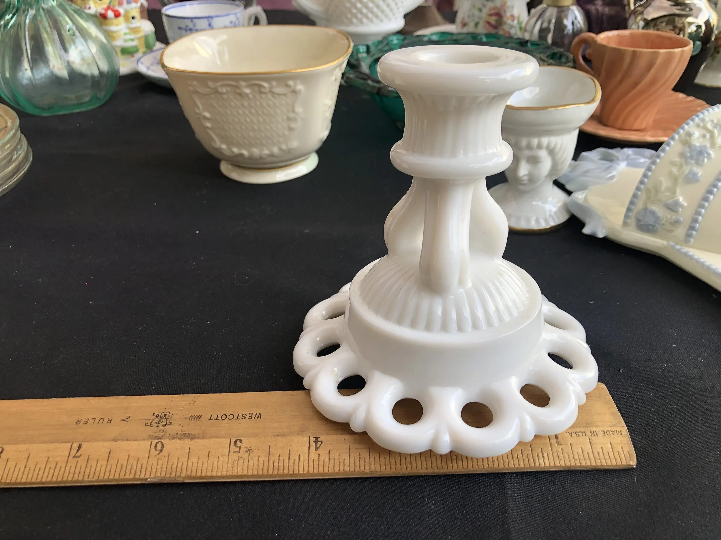 All / CANDLE HOLDERS CANDLE HOLDERS Clear Filters Categories All ADVERTISING - PRINTED ANIMAL CREATURES ANTIQUE ART DECO - ART NOUVEAU ART GLASS AUTOMOTIVE - TRANSPORT BARBER - MENS VANITY BAR WARE - ASHTRAYS - LIGHTERS - CASES BELLS - BANKS BEVERAGE WARE BOOKENDS - DOORSTOPS BOTTLES - JARS - JUGS - PITCHERS BOWLS BOXES - TRINKET DISH BRAND NAME CANDLE HOLDERS CANDY DISH CARTOON - COMIC - MOVIE CERAMICS - PORCELAIN - BISQUE CLOCKS - WATCHES CLOISONNE - ENAMEL CLOTHING - PURSES - SEWING COLORED GLASS COOKIE JARS - CAKE & CHOP PLATES CRYSTAL - CUT - ETCHED - PRESSED DISH SETS ELF - PIXIE - FAIRY EMBROIDERY - NEEDLEPOINT - SEWING FiGURINE - STATUE FLOWER FROG - PAPER WEIGHT - SNOW GLOBES FOREIGN GLASSWARE HISTORIC - LOCATION - SOUVENIR HOLIDAY JEWELRY - SILVER - GOLD LAMPS - APPLIANCE METAL - TIN MILITARY - POLICE - POLITICAL MILKGLASS NATIVE AMERICAN PICTURES - PAINTINGS - HANGINGS PLASTIC - LUCITE - RESIN PLATES POTTERY - CEMENT - CLAY - CHALKWARE RECORDS - MUSIC RELIGIOUS - RITUAL SERVING - UTENSILS - KITCHEN SALT - PEPPER SEA LIFE SIGNED SOAP, SAND, PRECIOUS STONE SPORTS - OLYMPICS SUGAR - CREAMER - TEA POT TOOTHPICK AND NAPKIN HOLDERS TOYS - DOLLS - GAMES TRIVETS - TILES - TRAYS VANITY - PERFUME - JEWELRY BOX VASE - PLANTER - WALL POCKET WOODEN Filter Clear Filter Quick View Fenton Glass Pink Dusty Rose Flower Band Candle Holder $16.00 Quick View Westmoreland Vintage Glass Stacked Ball Candleholders $16.00 Quick View Set of 2 Tiki Metal Palm Tree Textured Base Candle Holders $35.00 Quick View Heisey Pink Depression Glass Candleholder $15.00 Quick View Cambridge Moonlight Caprice Blue Candlestick (1) $15.00 Quick View Fostoria Glass Art Deco Sakier Pink Geometric Candlestick $20.00 Quick View PV Toy Amber French Swirl Finger Ring Chamber Candlestick Holder - France $15.00 Quick View Fenton - White Coin Dot Glass Candlestick - SOLD $45.00 Quick View Heisey Mercury Green Moongleam Candlestick $28.00 Quick View 1950s Cambridge Glass Company - Pair of Caprice 3 Candle Holder - Moonlight Blue $100.00 Quick View Bordallo Pinheiro Majolica Green Embossed Ivy 9” Pottery Candle Holder (1) - Portugal $35.00 Quick View Pair - Crystal Leaf Double Light Candlesticks $45.00 Quick View Glass Flower Floater Candleholder by Pipsan Swanson Saarinen, 1948 MCM $65.00 Quick View Pair Art Deco Style 2443 Topaz Light Candlesticks by Fostoria $25.00 Quick View Set of 3 Frosted Glass 9-Point Candleholders $28.00 Quick View Vintage Ball-Jae California Pottery 3 Piece Set - Orange Leaf Centerpiece with 2 Candle Holders $45.00 Quick View Fitz & Floyd 1981 Pastel Dragonfly on Flower $45.00 Quick View Vintage Christmas Circular Candle Holder with Three Choir Boys - SOLD $15.00 Quick View Haeger Turquoise/Gray Pottery Candle Holders with Floral Design $40.00 Quick View Czechoslovakia – Art Deco Set with Candlesticks MCM $45.00 Quick View MCM - Franciscan Pottery – Cafe Royal Candlestick $20.00 Quick View Heisey Crystalite Candlesticks $24.00 Quick View Brass Candlesticks on Oval Base – India $20.00 Quick View Westmoreland White Milk Glass Candlesticks $40.00 Quick View Pair – Pink Pottery Figural Flamingo Candleholders SOLD $45.00 Quick View Fitz & Floyd – White Pottery Swan with Candleholder $9.00 Quick View Westmoreland Della Robbia Console Set Bowl and Candle Stick Holders $45.00 Quick View Vintage Pair of Franciscan Apple Pattern Candle Holders $25.00 Quick View Royal Haeger Turquoise Cala Lilly Flower Candle Holders $40.00 Quick View Cut-Glass Double-Sided Taper Candle Holders –1960s $20.00 Quick View Fostoria – 3 Piece Amber Glass Console Bowl and Candlesticks $35.00 Quick View Fostoria Baroque Pair of Crystal Candlesticks with Etched Lido Pattern $30.00 Quick View MCM Nile Green & Gold Pottery Candle Holders $25.00 Quick View Party Lite Fusions Decorative Topper and Tray Ceramic Candle Holder $10.00 Quick View Pair of Heavy Crystal Scroll Candlesticks Candle Holders $25.00 Quick View Anchor Hocking Manhattan Clear Ribbed Depression Glass Candle Holder (Art Deco MCM) $10.00 Quick View Mid Century Frosted Glass Vintage Koi Candlestick Holder $29.00 Quick View Pair – Fenton White Milk Glass Hobnail Candleholders $18.00 Quick View Cambridge – Chrome and Frosted Glass Container $12.00 Quick View Pair – Vintage 1985 Oneida Crystal Ebony Black Single Candlestick Holders $40.00 Quick View Heisey Crystalite – Three Lite Candlesticks $75.00 Quick View Cambridge – Mulberry Crystal Candlesticks $15.00 Quick View Anchor Hocking – Clear Glass Queen Anne Candlesticks $30.00 Quick View Camark Three Piece Console Set $75.00 Quick View Bauer – Ray Murray Cal Art White Triple Candlesticks – 1936 - 1941 $70.00 Quick View Multi-Colored Pottery Turkey Candlestick - SOLD $15.00 Quick View Pair – Black Satin Pottery Crescent Candlesticks - SOLD $10.00 Quick View Fostoria – Coronet Pattern – 2-Lite Crystal Candlesticks $70.00 Quick View Oreefors Heavy Crystal Signed Candlesticks – Sweden $100.00 Quick View Green Pottery Gecko Lizard Sinlge Candlestick / Candle Holder $25.00 Quick View Glass Flower and Leaf Double Candlestick Holder Spray $45.00 Quick View Vintage Crystal Column Candlesticks – Pair $35.00 Quick View Fostoria – Pair of Trindle Crystal Candlesticks - Each holds 3 $60.00 Quick View Grecian Column Candlestick with Pink/Gold Roses $6.00 Quick View Gorgeous Vintage Pair Crystal Candlesticks with Prisms $60.00 Quick View Lenox – Pair of Crystal Double Stem Candlesticks $25.00 Quick View Pair – Miniature Brass 6-Sided Candlesticks $15.00 Quick View Fostoria Baroque Double Candlestick $75.00 Quick View Pair of Westmoreland "Doric" Pattern Milk Glass Candlesticks $18.00 Quick View Rare Vintage Silver-Plated Farm Girl Candleholder by Leonard $22.00 Quick View Vintage Merry Christmas Porcelain Candleholder with Rocking Horse and Tedy Bear $6.00 Quick View Pair Mint Green and White Speckled Votive Candle Holders $7.00 Quick View Pair of Clear Glass Candlestick Holders $10.00 Quick Vie