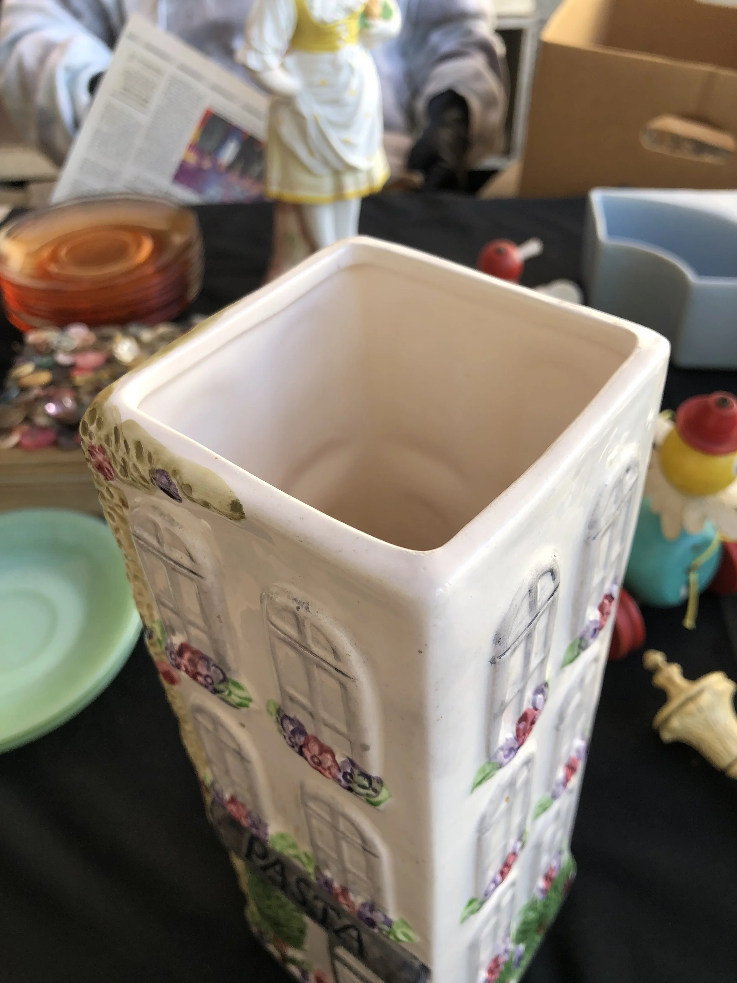All / CERAMICS - PORCELAIN - BISQUE CERAMICS - PORCELAIN - BISQUE Clear Filters Categories All ADVERTISING - PRINTED ANIMAL CREATURES ANTIQUE ART DECO - ART NOUVEAU ART GLASS AUTOMOTIVE - TRANSPORT BARBER - MENS VANITY BAR WARE - ASHTRAYS - LIGHTERS - CASES BELLS - BANKS BEVERAGE WARE BOOKENDS - DOORSTOPS BOTTLES - JARS - JUGS - PITCHERS BOWLS BOXES - TRINKET DISH BRAND NAME CANDLE HOLDERS CANDY DISH CARTOON - COMIC - MOVIE CERAMICS - PORCELAIN - BISQUE CLOCKS - WATCHES CLOISONNE - ENAMEL CLOTHING - PURSES - SEWING COLORED GLASS COOKIE JARS - CAKE & CHOP PLATES CRYSTAL - CUT - ETCHED - PRESSED DISH SETS ELF - PIXIE - FAIRY EMBROIDERY - NEEDLEPOINT - SEWING FiGURINE - STATUE FLOWER FROG - PAPER WEIGHT - SNOW GLOBES FOREIGN GLASSWARE HISTORIC - LOCATION - SOUVENIR HOLIDAY JEWELRY - SILVER - GOLD LAMPS - APPLIANCE METAL - TIN MILITARY - POLICE - POLITICAL MILKGLASS NATIVE AMERICAN PICTURES - PAINTINGS - HANGINGS PLASTIC - LUCITE - RESIN PLATES POTTERY - CEMENT - CLAY - CHALKWARE RECORDS - MUSIC RELIGIOUS - RITUAL SERVING - UTENSILS - KITCHEN SALT - PEPPER SEA LIFE SIGNED SOAP, SAND, PRECIOUS STONE SPORTS - OLYMPICS SUGAR - CREAMER - TEA POT TOOTHPICK AND NAPKIN HOLDERS TOYS - DOLLS - GAMES TRIVETS - TILES - TRAYS VANITY - PERFUME - JEWELRY BOX VASE - PLANTER - WALL POCKET WOODEN Filter Clear Filter Quick View Dept 56 SnowBabies "Winkin, Blinkin and Nod" Three Piece Set - Retired 1990 (no box) $25.00 Quick View Japan Lusterware Birds Creamer & Lidded Sugar Bowl - 1930-1940 $35.00 Quick View Babs Creations - Scarlett O'Hara Yesteryear Perfume - 1939 $28.00 Quick View MCM - Mid Century Ceramic Fruit Basket(s) Wall Decor (3 Pieces) $30.00 Quick View Antique Dogwood RS Prussia Footed Porcelain Cup Hand Painted Floral Design 2"x4" - Circa 1870-1918 $40.00 Quick View Kreiss & Company - "Psycho Ceramics" Hobo Figure - 1950s $15.00 Quick View Five (5) Limoges Saucers with Pink Roses and Blue Ribbons $25.00 Quick View Geisha Girl Demi Saucer with Green Rim $8.00 Quick View Sandland Ware- England - Ivory Bowl with "Old World Garden" Trim $8.00 Quick View Ceramic Horse and Covered Wagon Souvenir Toothpick Holder - Michigan $8.00 Quick View Bing & Grøndahl Bisque Porcelain Plate with the Motif "Summer" or "Youth" $75.00 Quick View Hall Autumn Leaf Ruffled Salt And Pepper Shakers $15.00 Quick View MCM Ceramic Turquoise Blue Swan Planter with Gold Accents $28.00 Quick View Antique Noritake Porcelain Azalea Pattern (19322) Oil Or Vinegar Cruet with No Stopper - 1920s $35.00 Quick View Vintage Novelty Pirate Salt And Pepper Shakers $15.00 Quick View Vintage Japanese White Ceramic Okina Noh Mask Trinket Box $22.00 Quick View MCM Vintage Frog Cookie Jar from 1960s - Doranne of California $60.00 Quick View Jeanette McCall "Icing On The Cake" Blue Sky Ceramic Poppy Floral 12” Vase - 1990s $80.00 Quick View Vintage Green Cleminsons California Pottery Large Tea Pot Wall Pocket - 1940-1950 $25.00 Quick View Vintage Large Cleminson Handpainted Ceramic Wagon Wheel Ashtray or Trinket Dish $20.00 Quick View Vintage Porcelain Phrenology Bust - Trilafon Head Tranquilizer Perphenazine $40.00 Quick View Antique Porcelain Open Lid Hand Painted Floral Hair Receiver with Gold Accents $30.00 Quick View Gold Luster Eggshell Porcelain Cup and Saucer $35.00 Quick View Vintage Japan - Mrs. Benjamin Franklin Old Lady Ceramic Teapot with Metal Handle $25.00 Quick View Pink Violin Vintage Ceramic Wall Pocket Vase $12.00 Quick View Vintage Ceramic Goldammer Dutch Boy and Girl with Basket $14.00 Quick View Occupied Japan Period Couple Figurine $20.00 Quick View Nelson McCoy Tan Stoneware Bowl Hunting Dog in Grass - Vintage 1930s $28.00 Quick View Vintage TK Thun Bohemia Floral & Gold Lusterware Large Serving Platter Czechoslovakia $28.00 Quick View Vintage Inarco Japan Porcelain Bell with Blue Flowers - 1975 $12.00 Quick View Single Porcelain Blue Floral Shaker without Stopper $5.00 Quick View 3 Hankscraft Footed Egg Cups - 1940s $30.00 Quick View White Bisque Monkey with a Silly Grin - Germany $20.00 Quick View Vintage Hand-Painted 1940s Puritan Pottery Apple and Pear Pattern Creamer / Pitcher $7.00 Quick View Royal Albert White Bone China Cup and Saucer - Petit Point with Band of Floral $22.00 Quick View Vintage 1980s Royal Albert Trillium Fine Bone China Tea cup with Matching Saucer $22.00 Quick View Royal Albert White Bone China Cup and Saucer with Multi-Colored Fruits $22.00 Quick View White China Bell with Two-Tone Purple Violets $10.00 Quick View Earthtone Ceramic Trivet Tile by Leone Kuhne Quail and Chilies - SOLD $15.00 Quick View Vintage Good Luck Kitty Holding Goldfish Koi - Small China Teapot or Creamer - 1970s $18.00 Quick View Vintage Hand-painted Saltshaker - Roses with Gold $6.00 Quick View Gorgeous 4-Footed Hand-Painted Nippon Vase (As Is) $45.00 Quick View Tall Ceramic Asian Beauty Wall Plaque $30.00 Quick View 2008 The Ellen Degeneres Birthday Show Hand Made Bisque Plate $35.00 Quick View 1983 Royal Doulton Brambly Hedge Winter Beaker Mug $20.00 Quick View 1978 Fitz and Floyd "Auto" Cookie Jar Boy & Dog Flat Tire Car $50.00 Quick View Vintage Arnel’s Ceramic Trojan Parade Horse – MCM 1975 $75.00 Quick View Vintage Turquoise Ceramic 10” Wide Wall Pocket $22.00 Quick View Old Chinese Porcelain Wise Man God of Prosperity "Lu" with Long Black Beard $95.00 Quick View VB Athena California Pottery Floral Ceramic Cloth Napkin Holder $12.00 Quick View Vintage Lords Prayer Ceramic Planter with Violets and Gold Trim - Japan $12.00 Quick View Asian Double Bud Vase with Colorful Tree and Birds $14.00 Quick View 1980's Rabbits Sitting in Cabbage Bowl with Lid $18.00 Quick View 1960’s Whimsical Ceramic Goldfish Turquoise Fish Vase Planter $30.00 Quick View 1950s American Bisque Chicken Cookie Jar - Chick with Plaid Vest and Tam Beret $65.00 Quick View Cute Little Ceramic Stinker - Skunk Figurine Made in Japan - SOLD $12.50 Quick View Small Noritake Trinket Dish with Flowers Made in Japan $15.00 Quick View Longchamp Chev