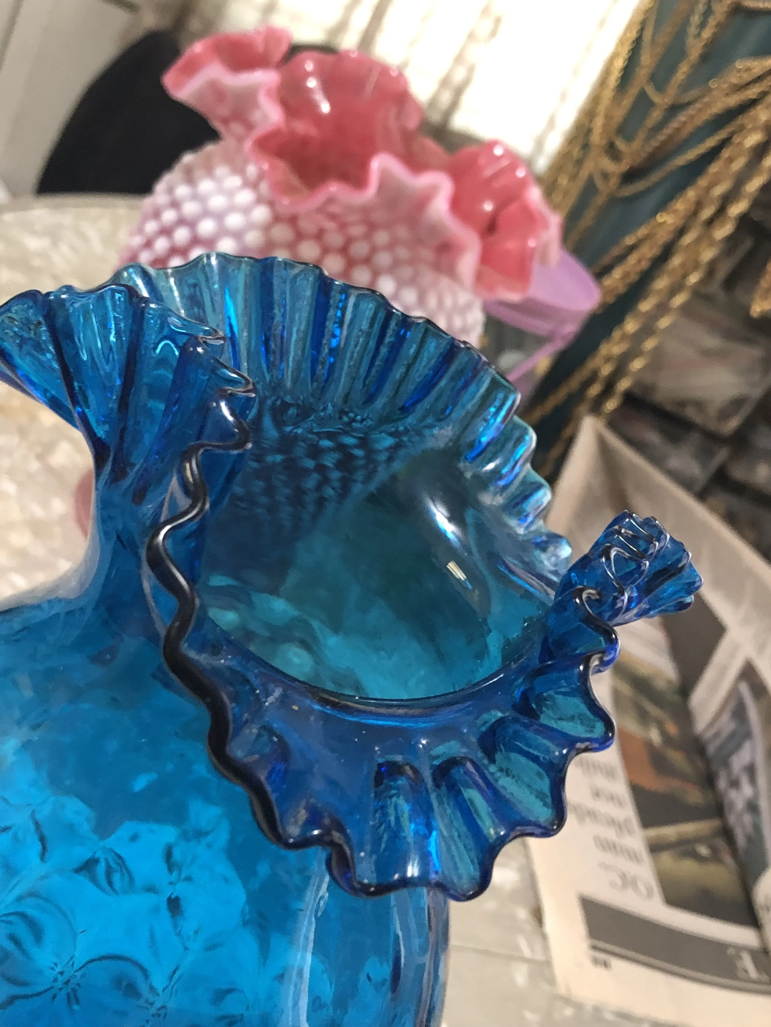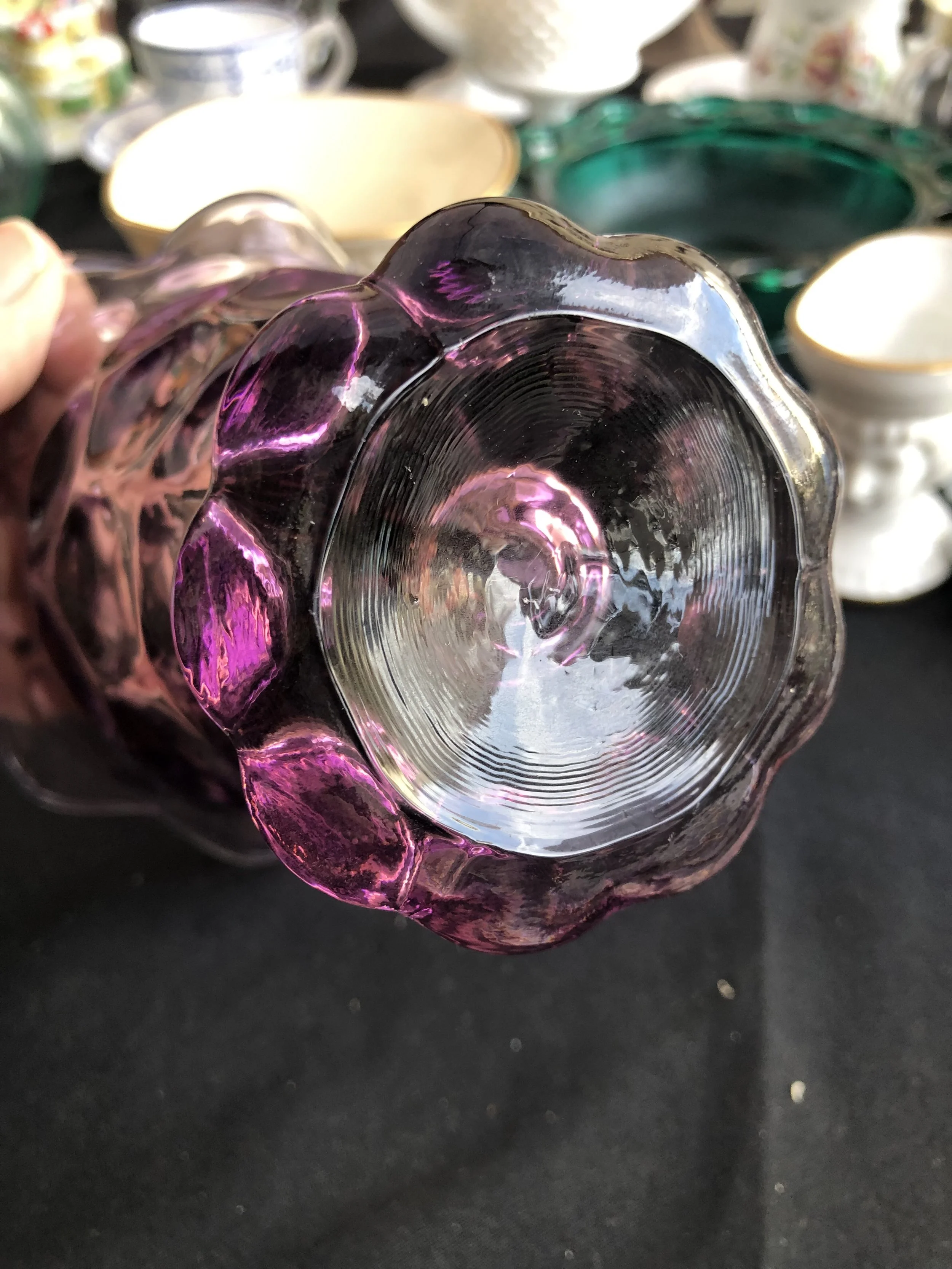All / COLORED GLASS COLORED GLASS Clear Filters Categories All ADVERTISING - PRINTED ANIMAL CREATURES ANTIQUE ART DECO - ART NOUVEAU ART GLASS AUTOMOTIVE - TRANSPORT BARBER - MENS VANITY BAR WARE - ASHTRAYS - LIGHTERS - CASES BELLS - BANKS BEVERAGE WARE BOOKENDS - DOORSTOPS BOTTLES - JARS - JUGS - PITCHERS BOWLS BOXES - TRINKET DISH BRAND NAME CANDLE HOLDERS CANDY DISH CARTOON - COMIC - MOVIE CERAMICS - PORCELAIN - BISQUE CLOCKS - WATCHES CLOISONNE - ENAMEL CLOTHING - PURSES - SEWING COLORED GLASS COOKIE JARS - CAKE & CHOP PLATES CRYSTAL - CUT - ETCHED - PRESSED DISH SETS ELF - PIXIE - FAIRY EMBROIDERY - NEEDLEPOINT - SEWING FiGURINE - STATUE FLOWER FROG - PAPER WEIGHT - SNOW GLOBES FOREIGN GLASSWARE HISTORIC - LOCATION - SOUVENIR HOLIDAY JEWELRY - SILVER - GOLD LAMPS - APPLIANCE METAL - TIN MILITARY - POLICE - POLITICAL MILKGLASS NATIVE AMERICAN PICTURES - PAINTINGS - HANGINGS PLASTIC - LUCITE - RESIN PLATES POTTERY - CEMENT - CLAY - CHALKWARE RECORDS - MUSIC RELIGIOUS - RITUAL SERVING - UTENSILS - KITCHEN SALT - PEPPER SEA LIFE SIGNED SOAP, SAND, PRECIOUS STONE SPORTS - OLYMPICS SUGAR - CREAMER - TEA POT TOOTHPICK AND NAPKIN HOLDERS TOYS - DOLLS - GAMES TRIVETS - TILES - TRAYS VANITY - PERFUME - JEWELRY BOX VASE - PLANTER - WALL POCKET WOODEN Filter Clear Filter Quick View Cambridge Glass "Draped Lady" Figurine Flower Frog $80.00 Quick View Jeannette Cherry Blossom Green Depression Glass Handled Platter - 1930-1939 $30.00 Quick View Hazel Atlas Florentine Depression Glass Gravy Platter $30.00 Quick View Fenton Glass Pink Dusty Rose Flower Band Candle Holder $16.00 Quick View Imperial Tiger Lily Marigold Carnival Tumbler (1) - Vintage $15.00 Quick View Imperial Glass 474 Daisy Design Rubigold Marigold Gold Iridescent Punch Cup $20.00 Quick View Fenton Sage or Olive Green Hobnail Vase $75.00 Quick View Westmoreland Vintage Glass Stacked Ball Candleholders $16.00 Quick View Jeannette Glass 1939 Cherry Blossom Pink Depression Glass Handled Tray - ON HOLD $20.00 Quick View Jenkins Green Ripple Ocean Wave Uranium Handled Glass Bowl $40.00 Quick View Turquoise Blue Milk Glass Toothpick Holder $30.00 Quick View Fenton Ruby Red Georgian Water Goblets - 1931-1942 $45.00 Quick View Duncan Miller Blue Opalescent Cornucopia Glass Vase Centerpiece - 1930-1940s $40.00 Quick View Pyrex Delphite Bluebelle Cinderella Divided Casserole Dish -1063 $25.00 Quick View Antique Northwood Green Carnival Glass Footed Bowl $35.00 Quick View Fenton Art Glass Ruby Red Dolphin Head Stretch Glass Vase - 1920S $60.00 Quick View Pink Depression Glass Cubist Bowl - Jeannette Glass Company $18.00 Quick View Heisey Pink Depression Glass Candleholder $15.00 Quick View Cambridge Moonlight Caprice Blue Candlestick (1) $15.00 Quick View Fostoria Glass Art Deco Sakier Pink Geometric Candlestick $20.00 Quick View PV Toy Amber French Swirl Finger Ring Chamber Candlestick Holder - France $15.00 Quick View Art Glass Large Blue Irridescent Glass Tray with Abstract Design $75.00 Quick View Huge Indiana Glass Marigold Carnival Glass Beverage Pitcher with Ice Lip - 1960s $45.00 Quick View Royal Ruby Depression Glass Vase with Ringed Middle - Anchor Hocking - 1938-1940 $18.00 Quick View Small Light Green Glass Basket $20.00 Quick View Fused Art Glass Plate Andra DuRee Martin with Fruit $30.00 Quick View Blenko Sea Green Crackle Glass Aqua Green Top Hat Art Glass $28.00 Quick View Soft Stone Potted Flower Arrangement $20.00 Quick View Anchor Hocking Pair - Forest Green Glass Stemmed Goblets $18.00 Quick View Fenton - White Coin Dot Glass Candlestick - SOLD $45.00 Quick View 1950s White Milk Glass Plate with Embossed Orange Blossom Flowers $10.00 Quick View Anchor Hocking Block Optic Pink Depression Glass Tumbler $5.00 Quick View Adams EAPG Blue Thousand Eye Sensation Bubble Oil Lamp Base $28.00 Quick View Heisey Mercury Green Moongleam Candlestick $28.00 Quick View LG Wright Amethyst Glass Iron Candy Butter Dish Replacement - LID ONLY $20.00 Quick View Anchor Hocking Salt or Pepper Shaker - Green Depression Uranium Glass - 1920-1940s $25.00 Quick View 1950s Cambridge Glass Company - Pair of Caprice 3 Candle Holder - Moonlight Blue $100.00 Quick View Fenton Cranberry Glass Thumbprint / Coin Dot Bedside Carafe and Cup set. $38.00 Quick View Vintage Fenton Moonstone Opalescent Hobnail Candy and Nut Bowl $20.00 Quick View NYC Vogue Merc Co. - Small Akro Agate Blue Slag Glass Toothpick Urn $25.00 Quick View Green Depression Glass Candy Bowl with Etched Stars - 1930s $25.00 Quick View MCM Handblown Amethyst Top Hat - Rainbow Glass Company $25.00 Quick View Rueven Nouveau Art Glass 3 Point Bowl with Satin Stain Drip - 1960s $25.00 Quick View Anchor Hocking Royal Ruby 80 Ounce Pitcher & Eight (8) Royal Ruby Glass Set $60.00 Quick View Set of Six (6) - Mt. Pleasant Black Glass Saucers - L.E. Smith Glass Company $30.00 Quick View Jeanette Pink Depression Glass Salt Shaker $15.00 Quick View Vintage Fenton Daisy and Button Amberina Top Hat Glass Toothpick Holder Vase $30.00 Quick View 1 Lb Covered Clear Butter Dish with Crisscross by Hazel-Atlas USA - 1930s $30.00 Quick View Pair of French Gilt-Decorated Opaline Glass Vases - SOLD $200.00 Quick View Vintage 1940s Fenton Glass Ivory Crest Vase $45.00 Quick View MCM Pink Depression Glass Swung Bud Vase $28.00 Quick View Green and White Swirl Murano Art Glass Bowl $65.00 Quick View Vintage Viking Glass Emerald Green Flowerlite Flower Frog Vase $50.00 Quick View Black Milk Glass Square Pedestal Vase $28.00 Quick View Vintage Horse & Good Luck Horse Shoe Green Glass Ashtray $20.00 Quick View Hazel Atlas Cloverleaf Candy Dish & Lid - Uranium Green - 1930s $45.00 Quick View Vintage Paden City Green Emerald Glo Star Cut Covered Mustard with Bakelite Handle $27.00 Quick View Fenton Hobnail Wild Rose & White Overlay Double Crimped Bowl - 1960s $20.00 Quick View Frigidaire Uranium Ribbed Glass Decanter w/Stopper $50.00 Quick View Vintage Fenton Uranium Glass Custard Glass Bell in Daisy and Buttons Pattern $25