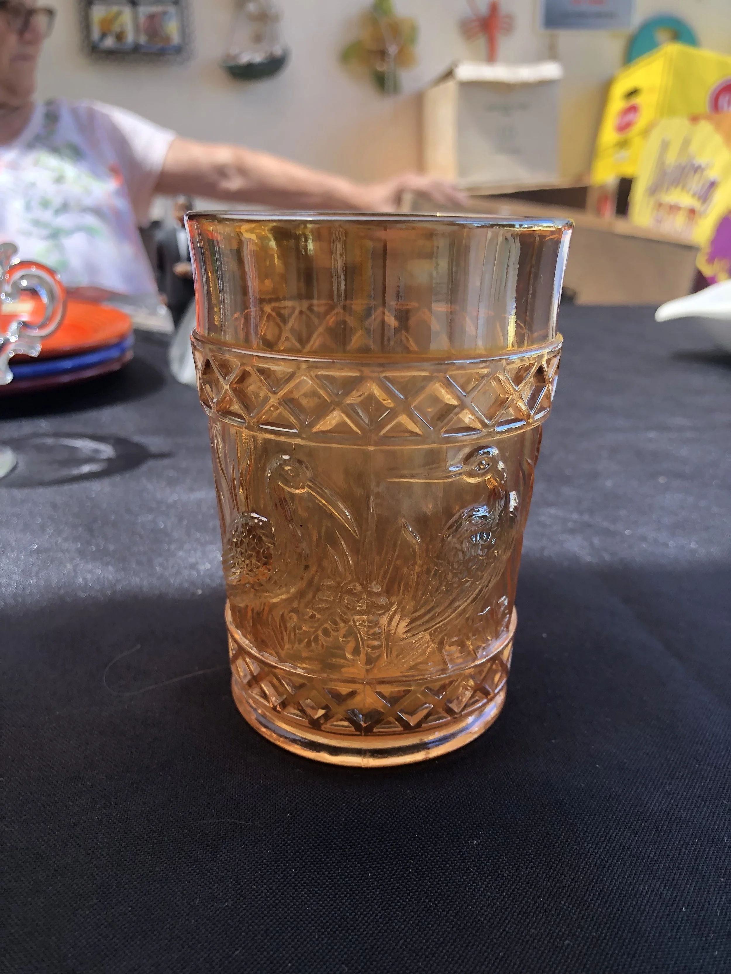 BEVERAGE WARE Categories: All ADVERTISING - PRINTED ANIMAL CREATURES ANTIQUE ART DECO - ART NOUVEAU ART GLASS AUTOMOTIVE - TRANSPORT BARBER - MENS VANITY BAR WARE - ASHTRAYS - LIGHTERS - CASES BELLS - BANKS BEVERAGE WARE BOOKENDS - DOORSTOPS BOTTLES - JARS - JUGS - PITCHERS BOWLS BOXES - TRINKET DISH BRAND NAME CANDLE HOLDERS CANDY DISH CARTOON - COMIC - MOVIE CERAMICS - PORCELAIN - BISQUE CLOCKS - WATCHES CLOISONNE - ENAMEL CLOTHING - PURSES - SEWING COLORED GLASS COOKIE JARS - CAKE & CHOP PLATES CRYSTAL - CUT - ETCHED - PRESSED DISH SETS ELF - PIXIE - FAIRY EMBROIDERY - NEEDLEPOINT - SEWING FiGURINE - STATUE FLOWER FROG - PAPER WEIGHT - SNOW GLOBES FOREIGN GLASSWARE HISTORIC - LOCATION - SOUVENIR HOLIDAY JEWELRY - SILVER - GOLD LAMPS - APPLIANCE METAL - TIN MILITARY - POLICE - POLITICAL MILKGLASS NATIVE AMERICAN PICTURES - PAINTINGS - HANGINGS PLASTIC - LUCITE - RESIN PLATES POTTERY - CEMENT - CLAY - CHALKWARE RECORDS - MUSIC RELIGIOUS - RITUAL SERVING - UTENSILS - KITCHEN SALT - PEPPER SIGNED SOAP, SAND, PRECIOUS STONE SPORTS - OLYMPICS SUGAR - CREAMER - TEA POT TOOTHPICK AND NAPKIN HOLDERS TOYS - DOLLS - GAMES TRIVETS - TILES - TRAYS VANITY - PERFUME - JEWELRY BOX VASE - PLANTER - WALL POCKET WOODEN All / Quick View Vintage China Tea Cup & Saucer Signed - Pink Saucer Made In Occupied Japan $25.00 Quick View Betson China Hand-Painted Porcelain Demitasse Tea Cup and Saucer Set From Japan $20.00 Quick View Vohenstrauss Johann Seltmann - Bavaria Demitasse Cup & Saucer Cobalt & Gold $25.00 Quick View Antique Dogwood RS Prussia Footed Porcelain Cup Hand Painted Floral Design 2"x4" - Circa 1870-1918 $40.00 Quick View Occupied Japan Rose Demitasse Tea Cup & Saucer - Ardalt Gold Beaded Accents Blue - 1920-1949 $25.00 Quick View Set of Six (6) - Padre Pottery Four Ringed Tumblers $125.00 Quick View Anchor Hocking Pair - Forest Green Glass Stemmed Goblets $18.00 Quick View Cambridge Drape Pattern - Green and Crystal Stemmed Cocktail or Sherbet $10.00 Quick View Cambridge Glass Farberware Chrome Craft Cocktail Amethyst Stem $12.00 Quick View FIESTA Taster's Choice Coffee Cup and Saucer - *White w/Red Logo* - Homer Laughlin $20.00 Quick View Bayel Crystal - Bacchante Nude Champagne Glasses - Set of 4 - France $100.00 Quick View Anchor Hocking Block Optic Pink Depression Glass Tumbler $5.00 Quick View Fenton Cranberry Glass Thumbprint / Coin Dot Bedside Carafe and Cup set. $38.00 Quick View Dartmouth Pottery Devon England "To Thine Own Self be True" Mug $10.00 Quick View Set 5 Frankoma Pottery Prairie Green Wagon Wheel 8 ounce Juice Glass Tumblers - # 80C $30.00 Quick View Set Of 4 Vintage Sheridan Silver and Porcelain Coasters with Bird Pattern $28.00 Quick View Anchor Hocking Tiara Depression Glass Set of 6 Sandwich Cups - 1970s $12.00 Quick View Franciscan October Pattern 8 Oz Cups (Retired) - Set of 2 - 1960s $18.00 Quick View Anchor Hocking Royal Ruby 80 Ounce Pitcher & Eight (8) Royal Ruby Glass Set $60.00 Quick View Nasco Indian Tree Pattern Brown Sepia Toned Dish Set Pieces - 17 Pieces $100.00 Quick View Five Bridges Pottery Feet Coffee Mug- 1970s $20.00 Quick View 6 Christmas Retro Holly & Berries Highball Glasses with Matching Pitcher -Libbey Glass Company - 1980s Xmas $45.00 Quick View Fitz & Floyd Large Pineapple Mug with Fruit $15.00 Quick View Set of Six (6) - Mt. Pleasant Black Glass Saucers - L.E. Smith Glass Company $30.00 Quick View Val St. Lambert Crystal Coaster with Frosted Fruit $12.00 Quick View McCoy Pinecone Teapot with Sugar and Creamer Set - 1946 $75.00 Quick View Riddle Me This - 1976 Pepsi DC Comics "Riddler" Drinking Glass $25.00 Quick View Russell Wright - Dark Brown and Light Brown Pieces $60.00 Quick View Set of Three Russian White Metal Glass Holders with Sputnik Design $60.00 Quick View Batgirl Drinking Glass - Pepsi Super Series 1976 National Periodical Publications $25.00 Quick View Blue Juice Glass with Feather Design- Maryland Glass Co. -1920’s to 1949 $10.00 Quick View Dugan Storks and Rushes Lattice Marigold Carnival Glass Tumbler $9.00 Quick View Homer Laughlin - 2 Sombrero Mexican Juice Glasses One Orange One Yellow $20.00 Quick View Set of three (3) Handpainted Fransican Apple Coffee Cups with California Marks - 1947 -1950s $27.00 Quick View Set Of 6 Vintage Panache Palm Trees and Setting Sun Highball Glasses $60.00 Quick View Vintage Rare Cera Parrot In a Cage - Set of 4 Tumblers $80.00 Quick View Vintage McCoy Green Missouri Mule Head Mug Figurine - 1950s $25.00 Quick View Large Pilsner Glass with Baseball Stem $10.00 Quick View Set of 6 Blue Crystal Georgian Tumblers $60.00 Quick View Gold Luster Eggshell Porcelain Cup and Saucer $35.00 Quick View Vernon Kilns – Bird Pottery – Golden Maple Cup and Saucer $20.00 Quick View Antique Fenton Ming Glass Decanter Set with Two Glasses - 1930s $75.00 Quick View Vintage Papél HAPPY HOLIDAYS Christmas Mug - Santa Dressing For Work - 1990s $12.00 Quick View Budweiser King of Beers Large Mug - 1950s - 19605 $15.00 Quick View 2 Vintage Beer Steins, Santa Anita Park- 1980s $15.00 Quick View Retro Tiki Barware - Set of 6 Raffiaware Rattan Burlap Thermo Plastic Tumblers/ Mugs - 1960s-1970s $25.00 Quick View Fostoria American Pattern – Crystal Cup and Saucer $12.00 Quick View Aloha Kauai Pottery Coffee Mug $8.00 Quick View Coffee Mug with Skier and Rabbits with Saying $7.00 Quick View Bugs Bunny 50th Happy Birthday Tumbler – Warner Brothers - 1990 $8.00 Quick View Duncan & Miller - Astaire Pattern – Three Amber Stemmed Glasses $30.00 Quick View Copeland Spode Scotland Chivas Brothers Bottle $20.00 Quick View 1978 – Pair of Garfield on Skateboard Glass Mugs from McDonalds $10.00 Quick View Antique Dugan Marigold Carnival Glass Banded Mug $20.00 Quick View Vintage - (2) Franciscan Cups & Square Saucers Set – Brown $16.00 Quick View Metlox Poppytrail Peach Blossom (2) Cups without Saucers - Made in California $8.00 Quick View Vintage - Belmont Uranium Glass Tumbler $15.00 Quick View MCM – Set of Six Gla