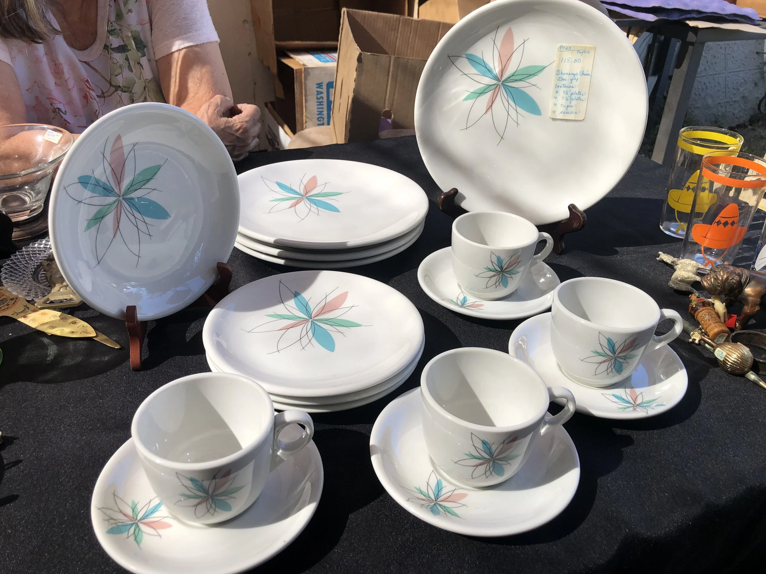 DISH SETS Categories: All ADVERTISING - PRINTED ANIMAL CREATURES ANTIQUE ART DECO - ART NOUVEAU ART GLASS AUTOMOTIVE - TRANSPORT BARBER - MENS VANITY BAR WARE - ASHTRAYS - LIGHTERS - CASES BELLS - BANKS BEVERAGE WARE BOOKENDS - DOORSTOPS BOTTLES - JARS - JUGS - PITCHERS BOWLS BOXES - TRINKET DISH BRAND NAME CANDLE HOLDERS CANDY DISH CARTOON - COMIC - MOVIE CERAMICS - PORCELAIN - BISQUE CLOCKS - WATCHES CLOISONNE - ENAMEL CLOTHING - PURSES - SEWING COLORED GLASS COOKIE JARS - CAKE & CHOP PLATES CRYSTAL - CUT - ETCHED - PRESSED DISH SETS ELF - PIXIE - FAIRY EMBROIDERY - NEEDLEPOINT - SEWING FiGURINE - STATUE FLOWER FROG - PAPER WEIGHT - SNOW GLOBES FOREIGN GLASSWARE HISTORIC - LOCATION - SOUVENIR HOLIDAY JEWELRY - SILVER - GOLD LAMPS - APPLIANCE METAL - TIN MILITARY - POLICE - POLITICAL MILKGLASS NATIVE AMERICAN PICTURES - PAINTINGS - HANGINGS PLASTIC - LUCITE - RESIN PLATES POTTERY - CEMENT - CLAY - CHALKWARE RECORDS - MUSIC RELIGIOUS - RITUAL SERVING - UTENSILS - KITCHEN SALT - PEPPER SIGNED SOAP, SAND, PRECIOUS STONE SPORTS - OLYMPICS SUGAR - CREAMER - TEA POT TOOTHPICK AND NAPKIN HOLDERS TOYS - DOLLS - GAMES TRIVETS - TILES - TRAYS VANITY - PERFUME - JEWELRY BOX VASE - PLANTER - WALL POCKET WOODEN All / Quick View Metlox Poppy Trail - Red Rooster Pattern $200.00 Quick View Currier & Ives Royal China - Three - 6 Piece Set(s) $25.00 Quick View Vintage Blue Willow 16 Piece Starter Kit - Japan $150.00 Quick View Anchor Hocking Royal Ruby 80 Ounce Pitcher & Eight (8) Royal Ruby Glass Set $60.00 Quick View Antique Minton (M&Co.) "Florentine" Ironstone Plates - 1850s (?) $175.00 Quick View Nasco Indian Tree Pattern Brown Sepia Toned Dish Set Pieces - 17 Pieces $100.00 Quick View Plainsman Gold Pattern by Frankoma - 15 Pieces $40.00 Quick View 1950's Cape Cod Pattern, Imperial Glass Set - 21 pieces $40.00 Quick View Stangl Pottery Fruit Pattern Dishes with Yellow Trim- 1940’s $45.00 Quick View Myott Staffordshire "Medici" Dish Set- 34 Pieces $275.00 Quick View Russell Wright - Dark Brown and Light Brown Pieces $60.00 Quick View Winfield China - Dragon Flower Pattern - 15 Pieces $75.00 Quick View Style House Fine China - DYNASTY BLUE Set of 41 Pieces - Japan $95.00 Quick View Vintage Shenango China Atomic Flower Starburst MCM Retro Service for 4 - 1950-1959 $120.00 Quick View Vintage Vernon Kilns Fruitdale Pattern - USA Hand Painted Pottery - 15 Pieces $75.00 Quick View Vintage Haviland Limoges France 20 Piece Set - Green and Gold Scroll Trim $350.00 Quick View Vernon Kilns Hawaiian Flowers - Designed by Don Blanding - 38 Piece Set SOLD $350.00 Quick View 21 Piece Nippon Hand Painted Rose Tea Set $40.00 Quick View Winfield Dish Set - Bamboo Pattern Cups Bowls and Plate $30.00 Quick View Vernon Kilns Pottery Dinner and Bread Plates - Orandie Pattern $40.00 Quick View Purple Amethyst Glass Dish Set - Service for 4 $45.00 Quick View Blue Willow Royal Ironstone Service for 6 China Plates, Bowls and Cups and Saucers Dish Set $100.00 Quick View Red Wing - Magnolia Pattern Hand Painted - Service for 4 Dish Set $200.00 Quick View 1940s Knowles China Co - Virginia Pattern Service for 4 Dish Set $175.00 Quick View Crate & Barrel Red 20 Piece Melamine Picnic Set $20.00 Quick View 6 Pc. Hazel Atlas Moderntone Platonite Mid Century Dinnerware $35.00 Quick View Metlox Vernonware – 7 Misc. Pieces - Antiqua Pattern with Embossed Fruit $40.00 Quick View 1948-1962 Brusche Bauer Gray Dinner Set for 4 - Plates, Bowls Cups and Saucers - SOLD $150.00 Quick View Vernon Kilns Arcadia Pattern Miscellaneous Dishes - Dish Set $76.00 Quick View Scarlet Ruby Red Glassware Bowls, Glasses and Plates $75.00 Quick View Metlox PoppyTrail Sculptered Daisy Misc. Dish Set $125.00 Quick View Swinnertons Set of Four 8" Ivory Plates – Staffordshire England $16.00 Quick View Swinnertons Set of Four 6 1/2" Bread & Butter Plates – Staffordshire England $12.00 Quick View J & C Bavaria Germany China Dinnerware Pink Flower Rim Pattern Dish Set 30 Pieces w/Lids $200.00 Quick View Anchor Hocking Fire King Blue Bubble Dinner Dish Set 85 Pieces $200.00 Quick View Vernon Kilns Brown Eyed Susan Pattern Dish Set 51 Pieces $275.00 Quick View Vernon Kilns Tam O'Shanter Pattern 38 Pieces $200.00 Quick View Vernon Kilns Homespun Pattern Dish Set 11 Pieces $40.00 Quick View Vernon Kilns Organdie Pattern Dish Set 43 Pieces $200.00 Quick View Fostoria American Glassware Dish Set 32 Pieces $125.00 Quick View Imperial Glass Candlewick Dish Set 20 Pieces $180.00 Quick View Vintage Mikasa China – Three Piece Child’s Place Setting with Teddy Bears - SOLD $25.00 Quick View Vintage Child’s White China Tea Set with Pagodas $22.00 Quick View Vernon Kilns – Brown Eyed Susan – 24 Piece Set for 4 (In Dish Set) $200.00
