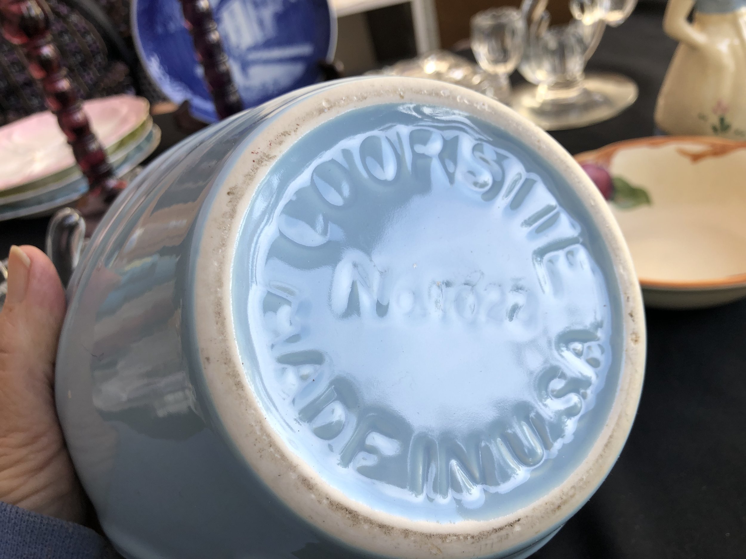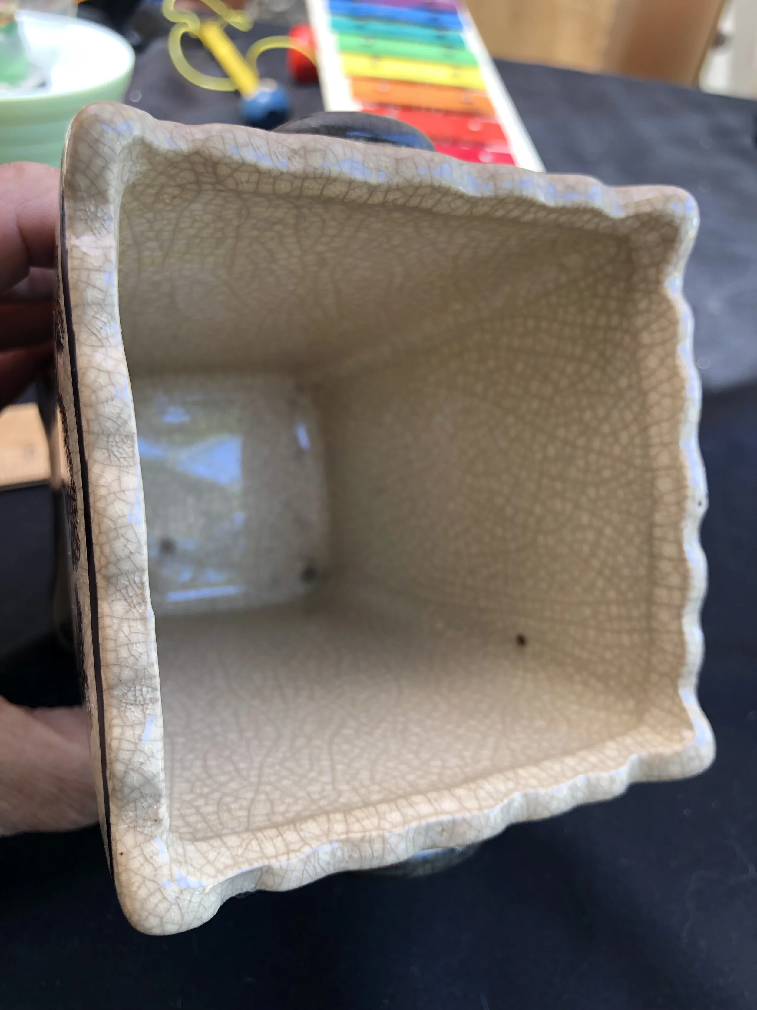 All / POTTERY - CEMENT - CLAY - CHALKWARE POTTERY - CEMENT - CLAY - CHALKWARE Clear Filters Categories All ADVERTISING - PRINTED ANIMAL CREATURES ANTIQUE ART DECO - ART NOUVEAU ART GLASS AUTOMOTIVE - TRANSPORT BARBER - MENS VANITY BAR WARE - ASHTRAYS - LIGHTERS - CASES BELLS - BANKS BEVERAGE WARE BOOKENDS - DOORSTOPS BOTTLES - JARS - JUGS - PITCHERS BOWLS BOXES - TRINKET DISH BRAND NAME CANDLE HOLDERS CANDY DISH CARTOON - COMIC - MOVIE CERAMICS - PORCELAIN - BISQUE CLOCKS - WATCHES CLOISONNE - ENAMEL CLOTHING - PURSES - SEWING COLORED GLASS COOKIE JARS - CAKE & CHOP PLATES CRYSTAL - CUT - ETCHED - PRESSED DISH SETS ELF - PIXIE - FAIRY EMBROIDERY - NEEDLEPOINT - SEWING FiGURINE - STATUE FLOWER FROG - PAPER WEIGHT - SNOW GLOBES FOREIGN GLASSWARE HISTORIC - LOCATION - SOUVENIR HOLIDAY JEWELRY - SILVER - GOLD LAMPS - APPLIANCE METAL - TIN MILITARY - POLICE - POLITICAL MILKGLASS NATIVE AMERICAN PICTURES - PAINTINGS - HANGINGS PLASTIC - LUCITE - RESIN PLATES POTTERY - CEMENT - CLAY - CHALKWARE RECORDS - MUSIC RELIGIOUS - RITUAL SERVING - UTENSILS - KITCHEN SALT - PEPPER SEA LIFE SIGNED SOAP, SAND, PRECIOUS STONE SPORTS - OLYMPICS SUGAR - CREAMER - TEA POT TOOTHPICK AND NAPKIN HOLDERS TOYS - DOLLS - GAMES TRIVETS - TILES - TRAYS VANITY - PERFUME - JEWELRY BOX VASE - PLANTER - WALL POCKET WOODEN Filter Clear Filter Quick View Vintage Chinese Laundry "Sprinkle Plenty" Man Water Sprinkler Bottle with Top $35.00 Quick View Cowan Pottery of Ohio - Art Deco Apple Blossom Pink Seahorse Fan Vase - 1920's $45.00 Quick View Navajo Handcrafted Dual-Spouted Clay Vase with Geometric Design $65.00 Quick View MCM Leaping/Running Deer or Gazelle Figurine | Stewart McCullough California Pottery $40.00 Quick View GMcB Turquoise & White Art Pottery Jardiniere $45.00 Quick View Winston International Advertising Ceramic Cigarette Ashtray / Black & Gold Gild Lettering $20.00 Quick View 1940 Vintage Stangl Art Pottery Bird #3447 Yellow Kentucky Warbler Bird Figurine $20.00 Quick View Vintage Nelson McCoy Aqua Pottery Figural Pelican Planter - 1940s $35.00 Quick View MCM Universal Cambridge Oven Proof Cattail Water Pitcher, Made in USA $30.00 Quick View Metlox Poppy Trail - Red Rooster Pattern $200.00 Quick View Large Pottery Grayish-Blue Footed Urn with Garland $25.00 Quick View Large Brown Stoneware Bean Pot with Bale Handle $75.00 Quick View W. Frazier California Pottery Green Leaf Centerpiece Serving Bowl #100 $20.00 Quick View German Art Pottery - Green Amano Scheurich Vase #629-40 Cylinder Vase with Drip Glaze $45.00 Quick View Set of Six (6) - Padre Pottery Four Ringed Tumblers $125.00 Quick View 1950 Cameron Clay Products Mare and Foal by Fence - Planter - Dresser Caddy $28.00 Quick View 1950s-1960s Vintage Ruth Rempel Balky the Mule Planter $12.00 Quick View Blue Mountain Pottery Duck Figurine - Blue/Green/Black Drip Glaze $15.00 Quick View Vintage 1920s Chalkware Bonzo Bull Dog - 1920-1949 $22.00 Quick View 1920s Antique Chalkware Half Doll with Blonde Hair $35.00 Quick View Art Pottery Roseville Wincraft Vase - 1948 $70.00 Quick View Dartmouth Pottery Devon England "To Thine Own Self be True" Mug $10.00 Quick View Set 5 Frankoma Pottery Prairie Green Wagon Wheel 8 ounce Juice Glass Tumblers - # 80C $30.00 Quick View MCM Shawnee Cameo Ware Splatter Vase $15.00 Quick View California Pottery Art Deco Dancing Girl White Ceramic Figurine $29.00 Quick View Hall Jewel Tea Autumn Leaf Custard Cups - Set of Six (6) $25.00 Quick View Bordallo Pinheiro Majolica Green Embossed Ivy 9” Pottery Candle Holder (1) - Portugal $35.00 Quick View Franciscan October Pattern 8 Oz Cups (Retired) - Set of 2 - 1960s $18.00 Quick View Five Bridges Pottery Feet Coffee Mug- 1970s $20.00 Quick View McCoy Stone Craft Soup Pot - 1975 $28.00 Quick View MCM Hull Pottery Pheasant and Sunflower Planter - 1950s $25.00 Quick View Russell Wright - Dark Brown and Light Brown Pieces $60.00 Quick View Vintage 1950’s HULL Pottery Large Swan Planter/Bowl $30.00 Quick View Vintage 1940's Shawnee Chinese Girl Reading Book Planter - #574 - MCM $12.00 Quick View Antique Iroquois China Small Butter Pat $18.00 Quick View Vintage Bauer Pottery - Aqua Pitcher/Carafe with Wooden Handle $30.00 Quick View Vintage Ecanada Jasperware Ashtray Art Pottery Teal & Cream - 1926 $35.00 Quick View Vintage Bauer Pottery - Orange Pitcher/Carafe with Wooden Handle $30.00 Quick View Vintage Mexican Handmade Clay Pottery Mother & Child Souvenir Vase - Tonola $28.00 Quick View Mexican Themed Hot Plate with Man in Sombrero - 1940-1950s $15.00 Quick View Vintage 1950s Abingdon U.S.A. Pottery Choo Choo Train Engine Cookie Jar with Lid $50.00 Quick View J. Ramies Vintage Cabbage Leaf Large Serving Bowl with Four Small Individual Bowls - 1970s $45.00 Quick View Antique Nelson McCoy Sanitary Stoneware Bowl – 1926 $100.00 Quick View Vintage 1950's Royal Copley Cat Planter with Yellow Yarn Ball Planter $20.00 Quick View Pound Puppies Nose Rose Cookie Jar - 1987 $45.00 Quick View Vintage Schnauzer Dog Cookie Jar $60.00 Quick View Vintage Heritage Limited Mama Pig with Piglets Cookie Jar Canister - 1950-1959 $55.00 Quick View Vintage Retro Frankoma Wagon Wheel 6 1/2” Ashtray - 1950 $20.00 Quick View Set of three (3) Handpainted Fransican Apple Coffee Cups with California Marks - 1947 -1950s $27.00 Quick View Vernon Kilns Hawaiian Flowers - Designed by Don Blanding - 38 Piece Set SOLD $350.00 Quick View Winfield Dish Set - Bamboo Pattern Cups Bowls and Plate $30.00 Quick View MCM Multi Bud Vase in Rose / Pink Hand Painted / Glazed - Made In Japan - SOLD $28.00 Quick View Vernon Kilns Pottery Dinner and Bread Plates - Orandie Pattern $40.00 Quick View Vintage Coorsite Pottery Tea & Coffee Drip Pot in Robins Egg Blue #846 $22.00 Quick View Vintage 1930s Hull Pottery Sunglow Pitcher in Yellow and Pink Floral - USA $24.00 Quick View 1920's Vintage Weller Pottery Woodcraft Log Planter Oak Leaf Vase $25.00 Quick View California Pottery - Turquoise Woman wtih Flowing Garment $40.00 Qui